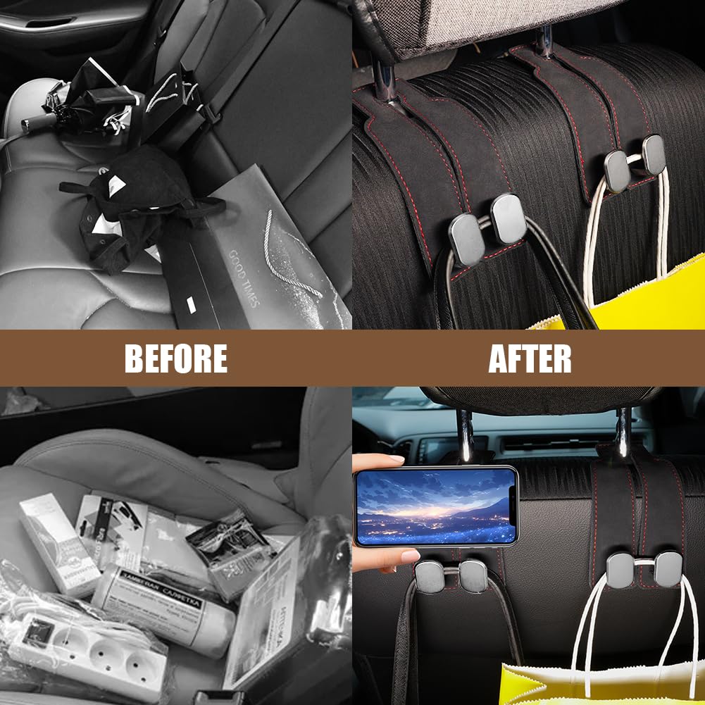 Conception de flexion de suspension:crochets d'appui-tête est un crochet de rangement incurvé spécial qui s'adapte mieux à la courbe du dossier du siège de voiture crochet de siège de voiture peut ajouter deux fois plus d'espace de rangement supplémentaire à votre appuie-tête,vous permettant d'accrocher plus d'articles,et organisez votre voiture sans sacrifier l'élégance,vous pouvez la redresser et la cacher entre les appuie-tête de votre voiture lorsque vous ne l'utilisez pas. Économise efficacement de l'espace dans la voiture,Il peut non seulement être utilisé pour accrocher des sacs de courses et des fournitures de voyage,mais peut également être utilisé comme support de téléphone portable,Il a de multiples utilisations,gardant la voiture bien rangée tout en libérant vos mains. Facile à utiliser:notre Cintre Voiture adopte une conception à ouverture latérale,qui peut être facilement installée sans retirer l'appui-tête de la voiture,Il suffit de l'accrocher à l'appui-tête de la voiture,et sa conception de crochet rond lui permettra de s'adapter automatiquement à votre tête,est stable et ne tremble pas pendant l'utilisation,Notre surface Car Back Seat Organizer est recouverte de cuir,vous n'avez donc pas à vous soucier de rayer le siège de la voiture. Crochet pour Siège de Voiture, 4 Pièces Crochets Appuie Tete Voiture Utilisations Multiples:cintre appui-tête S'adapte à la plupart des voitures,SUV ou camions du marché,transformant l'appui-tête de votre voiture en un espace de rangement multifonctionnel pour vous aider à garder votre voiture bien rangée et organisée,Car Seat Hooks Idéal pour suspendre des courses,des vêtements,parapluies,sacs à main,portefeuilles,bouteilles d'eau,jouets pour enfants,produits pour bébés,chapeaux,masques,lunettes de soleil et plus encore. Achetez Universal Car Seat Back Double Hooks for Headrest Handbag Storage. Lun des nombreux articles disponibles dans notre rayon {1} ici chez Crochet Appui Tête Voiture KAFANLIN Lot De 2 Crochets Pour Appuie-tête De Voiture Pour Sacs à Main Et Sacs En Cuir Mignons Pour Appuie-tête De Siège De Voiture - Crochets Doubles Pour Sacs D'expédition, Rose Et Accessoires Voiture Intérieur Facile à utiliser:notre Cintre Voiture adopte une conception à ouverture latérale,qui peut être facilement installée sans retirer l'appui-tête de la voiture,Il suffit de l'accrocher à l'appui-tête de la voiture,et sa conception de crochet rond lui permettra de s'adapter automatiquement à votre tête,est stable et ne tremble pas pendant...