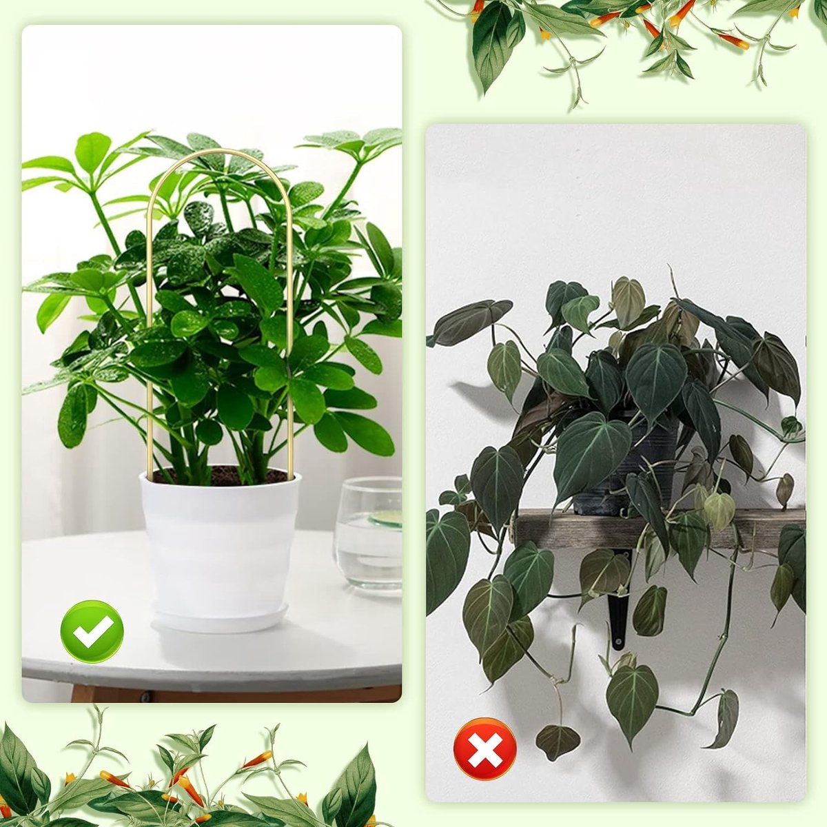 Lot de 4 supports de tige pour plantes d'intérieur grimpantes Support Pour Plante Grimpante Support Pour Tige De Plante BOXOB 12pcs Supports Pour Tiges De Plantes, 4 Tailles Crochets Support Plantes Interieur Accessoire Jardinage Insérez simplement la tige de la plante et fixez les crochets pour garder vos plantes debout et stables à mesure qu'elles se développent. En raison de la différence entre les différents moniteurs, il peut y avoir une légère différence de couleur. Matériel premium: nos supports de tige de plante sont faits d'un excellent acrylique, ce qui les rend difficiles, fiables et légers, pas faciles à plier ou à déformer, peut fonctionner pendant longtemps. Contenu de l'emballage : vous recevrez 4 supports de tige de plantes en 2 tailles, aidant à guider et stabiliser la croissance des plantes et à favoriser le développement normal de la structure Fits pour diverses plantes: nos supports de tige végétale sont polyvalents et adaptés à un large éventail de plantes, comme les fleurs, le lierre, les roses, les gloires du matin, les vignes, les pothos, le jasmin et plus encore. 4 pièces Tuteurs pour Plantes grimpantes de 40CM, Tiges de Fibre Coco... Facile à utiliser: ces supports de plante sont livrés avec six crochets faciles à utiliser, chaque support avec un trou central pour insérer des tiges de support. Veuillez vérifier attentivement les tailles avant votre commande.