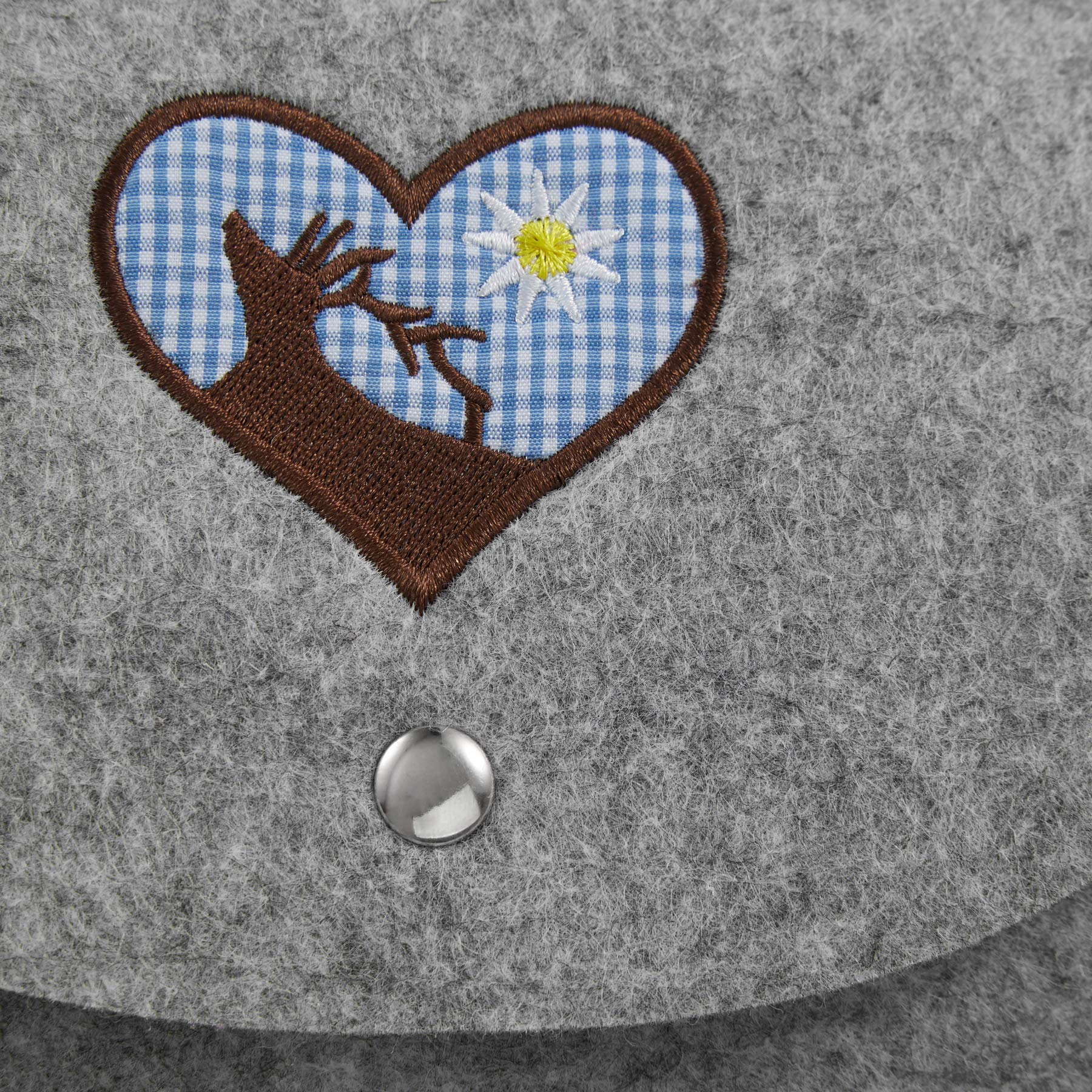 Sac à main pour femme : rangement sûr avec fermeture éclair, compagnon idéal pour téléphone portable et objets personnels lors de la fête folklorique. Sac à main pratique pour femme : avec bandoulière de 120 cm, facile à accrocher ou à fixer au tablier pour un port confortable à la fête de la bière. Fichier modèle broderie sac à main Dirndl 3 Rock Queen | Tissus Hemmers Fondue & raclette, Sélection Sac à pommes de terre Edelweiss... Élégant sac traditionnel pour femme : Le feutre gris confère une élégance intemporelle. Fichier de broderie le meilleur des bois de cerf de cerf Parfait à combiner avec vos robes Dirndl et votre costume de fête de la bière Idéal pour la fête de la bière Sac à main Femme : rangement sécurisé avec fermeture éclair, compagnon idéal pour le téléphone portable et les effets personnels lors de la fête populaire Sac Traditionnel Femme Mini Sac En Forme De Cœur Avec Bandoulière Femme, Rouge | Milano Sac Dirndl Coeur Idéal pour la fête de la bière. Avec sac Dirndl. Fonctionnalité : design en forme de cœur en feutre de qualité supérieure avec broderies edelweiss, taille 19 x 15 x 4 cm pour un confort optimal lors d'événements traditionnels.