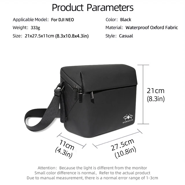 Spécifications : Modèle compatible: DJI NEO 2 / Mavic 4 Pro / Mavic 3 Pro / Mavic 3 Matériel: Tissu Oxford imperméable Poids brut : pour le drone : 56g pour pour Drone + RC-N3 : 112g pour (3 en 1): 168g Dimensions : pour Drone: 22 * 15 * 7cm pour pour Drone + RC-N3: 25 * 15 * 5,5 cm pour (3 en 1): 25 * 15 * 6,5 cm C Étui de transport pour DJI NEO 31x21x9cm gris portable étanche Étui de transport Neo 2 : ce sac de rangement est spécialement conçu pour le drone Neo 2 et 2 batteries. Peut contenir l'appareil, l'hélice de rechange, le tournevis, le câble de charge et d'autres accessoires à la fois Coque de protection pour DJI NEO 2., L'extérieur est en tissu Oxford imperméable, tandis que l'intérieur est en tissu de velours doux et résistant à l'usure, qui est robuste et durable, capable de gérer divers scénarios d'utilisation et fournissant une tranquillité d'esprit durable pour l'équipement. Sac portable pour DJI NEO 2., Le corps est léger, compact et confortable à transporter, ce qui le rend pratique à transporter avec vous, que ce soit pour les trajets quotidiens ou les voyages en plein air. Coque rigide anti-choc, résistante aux éclaboussures et à la pression Intérieur moulé sur mesure pour le drone, deux batteries et le hub de charge Poche filet zippée pour ranger câble, cartes mémoire et petits accessoires Poignée supérieure et bandoulière amovible pour un transport facile au quotidien Dimensions : 20,4... Remarque: Ne comprend pas le drone NEO 2, le RC-N3 ou les accessoires. Coque pour DJI NEO 2., Protection complète, résistante à la poussière et aux rayures. Dji Neo2 étui Rangement Drone Sac Transport DJI Neo - Protection Coque Dure 29x21x11cm Protection Drone Portable Etui Dji Neo 2