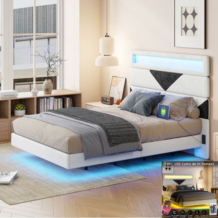 Lit Capitonné Adulte 140x190 Cm, Velours, éclairage LED RGB, Lit Effet Flottant 2 Ports Usb Sommier A Lattes Blanc 85431147 Lit Double Sommier Lattes Lit Adulte 140x190 Cm, 2 Places, Avec LED, USB-A/C, Tête De Lit à Rayures Réglable, Sommier à Lattes En Bois, Design, Lit Suspendu Capitonné En Velours - Beige Lit Flottant Blanc Capacité 350 Kg Pour réduire les risques de dommages, il sera expédié en deux colis et pourrait arriver à des dates différentes. Associé à une bande lumineuse LED sous le lit, il crée un look moderne et technologique, ajoutant une touche futuriste et onirique à votre chambre La tête de lit est fabriquée en cuir respirant, alliant esthétique et praticité, pour un confort optimal EN STOCK : Lit 140 x 190 avec sommier, lit flottant avec éclairage LED et 2 prises & 2 ports USB, tête de lit capitonnée avec rangement, tissu en lin, gris foncé, WDL-Lit13-B pas cher. Livraison rapide partout en France Vaste Espace de Rangement: Ce lit adulte 140x190 offre de nombreux rangements, notamment des tables de chevet et des étagères ouvertes, parfaits pour ranger vos objets du quotidien comme vos lunettes, votre téléphone et vos télécommandes, pour une chambre propre et organisée Apportez une touche de modernité et de confort à votre chambre avec ce lit flottant 140x190 cm. Conçu pour allier style contemporain et fonctionnalité, ce lit offre un design épuré et élégant tout en intégrant des éléments pratiques comme une tête de lit avec rangement et une multiprise intégrée Montage Facile: Le cadre de lit 140 x 190 est fourni avec des instructions détaillées et des outils pour un montage rapide et facile. Tête de Lit Intelligente: Le lit LED 140x190 est équipé de ports USB et Type-C, ainsi que d'une prise pour recharger facilement vos appareils électroniques.
