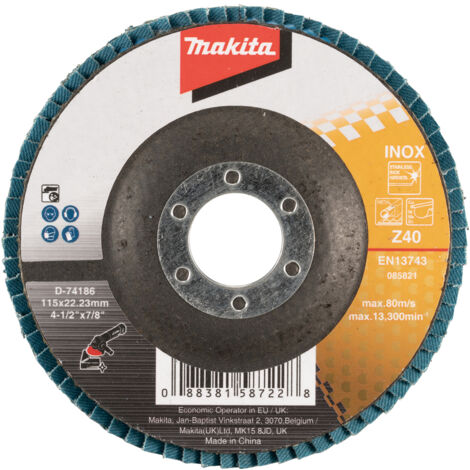 Diamètre 115 mm, épaisseur 6 mm, alésage 22,23 mm, grain A36P , ., Quantité : 6 mm , Type: A 36 P , Qté: 1., Disque de meulage optimal pour une utilisation avec des soudures en acier et à pansement Oxyde d'aluminium, grain moyen Disque Meulage Métal Grain A36P Makita Disque à ébarber, 150 Mm, 10 Pièces, En Aluminium, B De 17669–10 Lot 100 Disques Makita Ripley - SET MAKITA 5 DISCOS ABRASIVOS DE CORTE 76X10 MM D-74815-5 Disque à ébarber Makita A-80927 de 115 mm de diamètre et de 6 mm d'épaisseur, conçu pour le métal et les matériaux durs, qui monté sur les meuleuses disqueuses Makita permet d'enlever une partie de la matière de pièces métalliques Disque flexible Makita B-18546 125 mm à ébarber