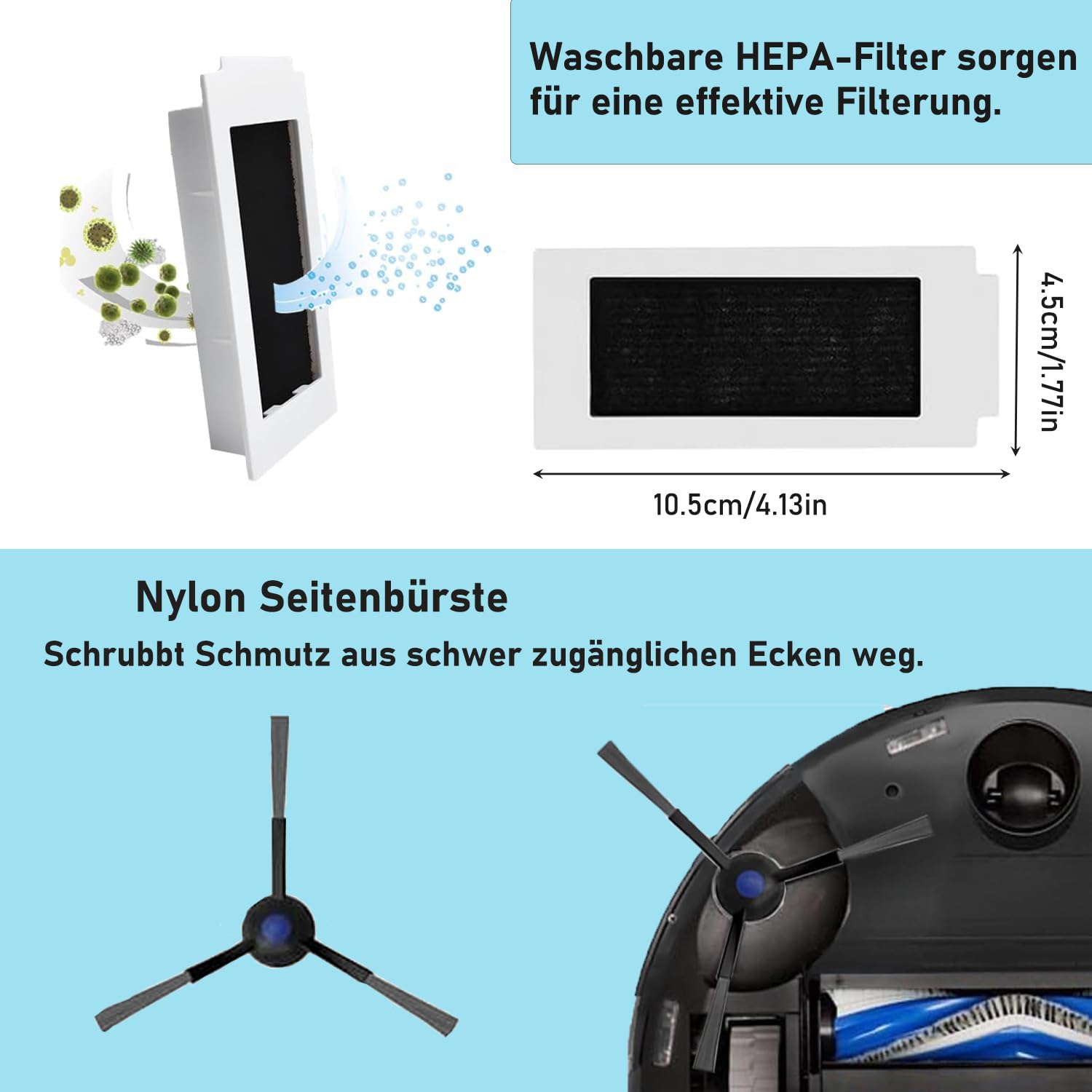 *Nombre de pièces : 1 lot. * Performance de nettoyage améliorée : avec ces pièces de rechange et accessoires, votre aspirateur maintiendra ses excellentes performances de nettoyage. * Prolongez la durée de vie de votre aspirateur : en remplaçant régulièrement les pièces usées, vous pouvez prolonger la durée de vie de votre aspirateur. Installation rapide et simple : aucune compétence technique n'est nécessaire. Aucun outil ou expertise technique nécessaire. T30S/T30S PRO/T30S AI Antibacterial* Accessories Kit - CA Capture efficace de la saleté : la brosse latérale balaie les bords et les coins tandis que le filtre piège les particules fines ; ensemble, ils un nettoyage en profondeur dans tout votre espace de vie. Composants durables : fabriquées à partir de matériaux tels que l'ABS et le nylon, ces pièces de rechange sont conçues pour une utilisation prolongée sans sacrifier l'efficacité. T30S Pro Omni : 100e de réduction pour le lancement de ce nouveau... Kit Accessoires Ecovacs T30S 27PCS Kit D'accessoires Pour Ecovacs Deebot T30S/T30S PRO/T30S AI/T30S Kit Pièces Rechange Ecovacs T30S Caractéristiques : * Nom du produit : ensemble de pièces de rechange. La brosse latérale principale balaie le long des bords et des coins, tandis que le filtre et le sac à poussière piègent les particules fines, et le chiffon assure un nettoyage doux et efficace. Ensemble complet : ce lot comprend 1 brosse principale, 6 serpillères, 4 filtres, 4 sacs et 4 brosses latérales offrant tout ce dont vous avez besoin pour garder votre aspirateur robot T30S/T30S Pro en fonctionnement * Installation pratique et facile : le remplacement des pièces et accessoires est rapide et sans effort. Contenu de l'emballage : 1 brosse principale + 4 chiffons + 4 filtres + 6 brosses latérales. Caractéristiques : * Composants efficaces : la brosse latérale principale, le filtre, le chiffon de nettoyage sont fabriqués avec des matériaux de haute qualité, garantissant la durabilité et une utilisation durable. Prolongez la durée de vie de votre aspirateur : en remplaçant régulièrement les composants usés, vous pouvez prolonger considérablement la durée de vie de votre aspirateur T30S/T30S Pro.
