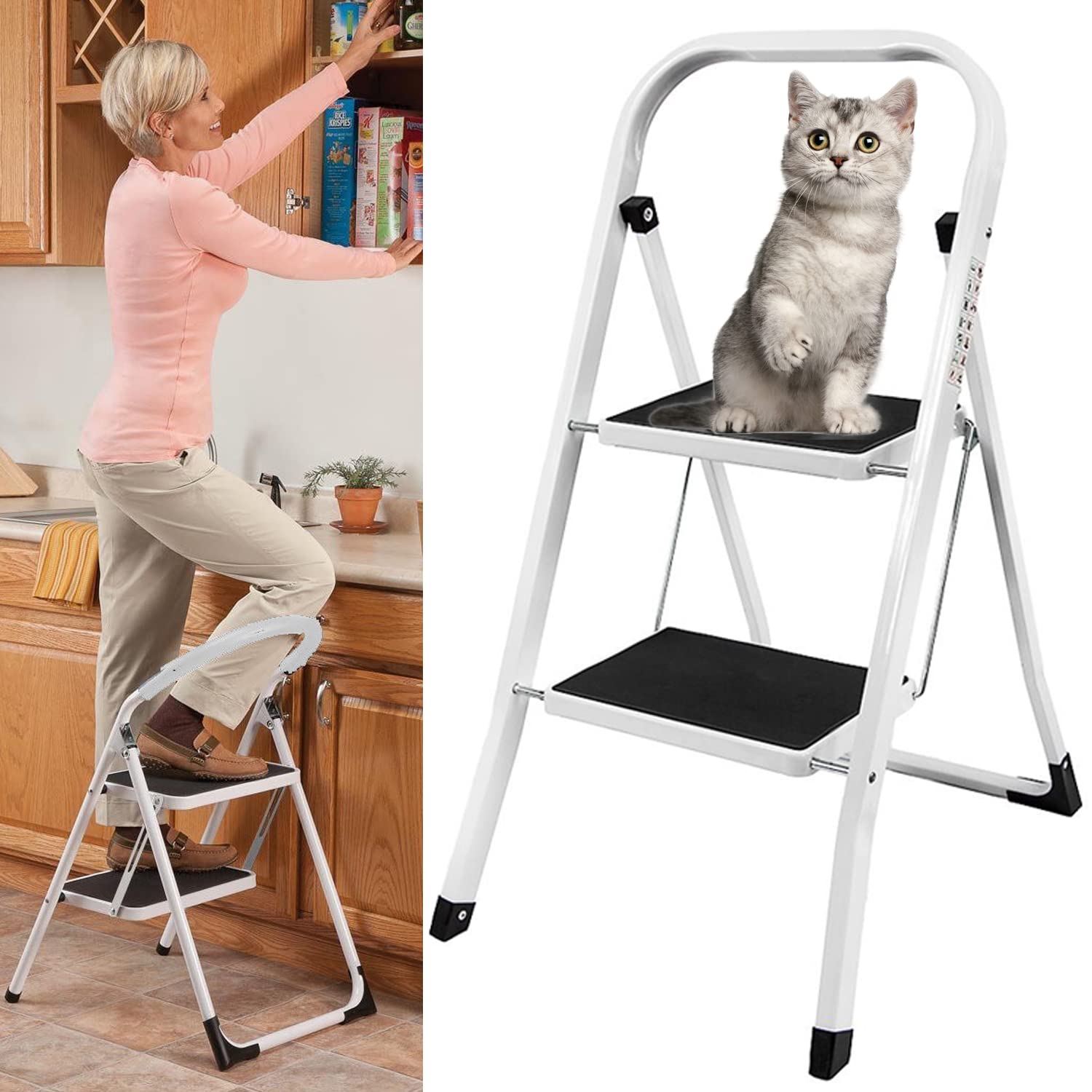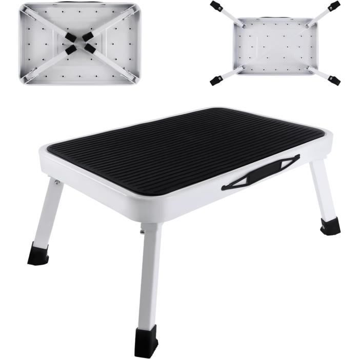 Sa grande marche de 37,8 x 26 cm équipée d'un tapis antidérapant assure une stabilité optimale, tandis que ses quatre pieds en caoutchouc orientés vers l'extérieur évitent tout basculement et protègent le sol des rayures Une solution fiable et pratique pour toutes vos tâches domestiques. Marche Pied Cuisine Escabeau Pliable Antidérapant à 4 Marches Capacité De 150 KG Echelle Marchepied En Fer~0736542228700 01c Mp Tabouret Pliable Rangement Plat Compact et sûr au quotidien Avec son pliage ultra-plat et sa barre d’appui sécurisée, le marchepied Security+ combine praticité et fiabilité. - SECURITE - Doté d'une poignée robuste, ce marchepied assure un appui fiable pour vous aider à monter en toute confiance, que ce soit pour attraper un objet en hauteur ou entrer dans une baignoire en toute sécurité. - RANGEMENT FACILE - Grâce à son design compact (moins de 9 cm une fois plié), il se glisse facilement dans un placard, derrière une porte ou sous un meuble, sans encombrer votre intérieur. PRATIQUE - Le marchepied permet d'atteindre un placard en hauteur, aider les enfants à prendre de la hauteur ou même descendre d'une caravane ou un camping-car. Peut être utilisé aussi bien à l'intérieur (maison, bibliothèque, entrepôt), qu'à l'extérieur (garage, caravane, camping-car, camping Escabeau Pliable, Facile À Ranger, Pliable, Antidérapant, Tabouret Associés à une large plateforme ferme de 38 × 26 cm, ils garantissent confort et stabilité à chaque utilisation. - LARGE & ANTI DERAPANTE - Le marchepied offre une surface solide de 38 x 26 cm avec revêtement antidérapant, pour garantir une stabilité optimale lors de chaque montée, même avec des chaussures mouillées ou en chaussettes. Facile à ranger dans les petits espaces, il offre une plateforme antidérapante et une structure robuste qui permettent de monter en toute confiance.