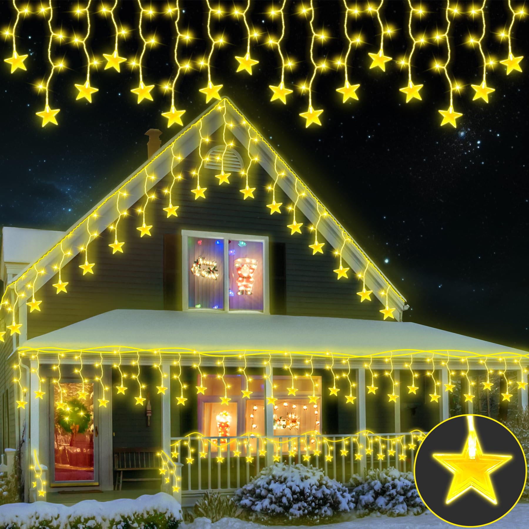 il peut facilement couvrir une grande zone que vous voulez décorer, il est idéal pour décorer les jardins, les patios, les pergolas, les mariage, les fêtes, les salles de séjour. Guirlande Lumineuse Extérieure Noël 3.5m 96 LED, Rideau Lumineux Noël Extérieur 8 Modes, IP44 Étanche Connectable Guirlande Stalactite Extérieure pour Fête Jardin Balcon Fenêtre, Blanc Chaud [Energy Class E Les lumières de Noël extérieures ont un large éventail d'applications : elles peuvent être utilisées pour décorer les intérieurs et les extérieurs, éclairer la nuit noire et rendre la vie intéressante. illuminera votre extérieur ou intérieur pendant Fête Noël, proditez une atmosphère fectival ! 【Décoration Extérieure Parfaite】le rideau lumineux extérieur est parfait pour les décorations intérieures et extérieures. Faible consommation d'énergie, ne surchauffe pas après de nombreuses heures d'utilisation, économisant 90% d'énergie par rapport aux guirlandes LED traditionnelles. Veuillez noter que la prise ne sont pas étanches. Retrouvez ici un large choix de produits pour réaliser une magnifique décoration de Noël lumineuse en extérieur. Et plus particulièrement, des guirlandes de Noël pour l’extérieur. Modèle led ou à pile, vous découvrirez toute une sélection d’objets lumineux pour sublimer vos extérieurs pendant la saison des fêtes Spécification: Nom du produit: LED Rideau Lumineux Taille: 3., 5M/4M/5M Quantité de LED: 3., 5M 96LED/4M 96LED/5M 216LED Couleurs de lumière optionnelles: Blanc Chaud, Blanc Froid, Bleue, Coloré Connectable: Max 8 brins Emballage inclus: 1 x lumières de glaçon à LED 1 x manuel Les lumières glaçons sont étanches et conçues pour résister à une pluie légère ou à des déversements d'eau, ce qui les rend parfaites pour la décoration extérieure. ANSIO® Guirlande Lumineuse 7.5m 220 LED Bleu Guirlande Stalactite Guirlande étanche Connectable Yowin Guirlande Lumineuse 3m X 3m 300 LED Rideau Lumineux Noel Avec Transformateur, Timer, 8 Modes Étanche Guirlande Rideau Lumineuse Pour Noël Chambre Fenêtre Mariage Extérieur Interieur Décorations Guirlande Stalactite IP44 étanche 【Facile à Utiliser et Sûr】 Accrochez les guirlande luces sur l'avant-toit, le haut du hall, la main courante ou n'importe où vous voulez, cela pourrait créer une atmosphère festive et romantique. Veuillez noter que l'adaptateur et la prise ne sont pas étanches. Veuillez noter: En théorie, il est possible de relier jusqu'à 8 jeux de guirlandes lumineuses, mais nous vous recommandons de ne connecter que 6-7 jeux pour vous assurer que les lumières sont suffisamment lumineuses. 4M 96LEDs Rideau lumineux noel exterieur, 19 descentes(3 longueurs: 40/50/60cm). 5M 216LEDs Rideau lumineux noel exterieur, 36 descentes(3 longueurs: 40/50/60cm).