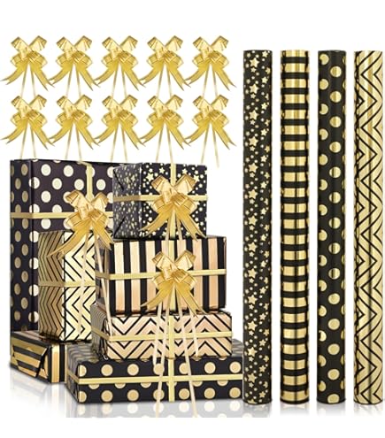 【Dimensions】5 rouleau papier cadeau anniversaire, chaque rouleau mesurant environ 43cm × 3m, totalisant 15 mètres pour les 5 rouleaux. 【Élégant Papier Cadeau】5 rouleau papier cadeau de styles différents, avec design noir et or. 【Matériaux de Haute Qualité】Le papier cadeau rouleau est fait de papier de haute qualité et doté de technologie d’impression dorée avancée. 【Kit de Papier Cadeau】Vous recevrez 5 papier cadeau anniversaire, un rouleau de ruban doré et deux rouleaux de ruban adhésif double face — vous permettant d’emballer plusieurs cadeaux avec différents designs, simplifiant l’emballage cadeau. Il est aussi idéal comme papier cadeau pour mariage et papier cadeau enfant, répondant à vos besoins d’emballage cadeau pour différentes occasions. Le papier cadeau et l'étiquette rouleau : le duo parfait | Le Blog Rouleau Cadeau Bureau Vallée Papier Cadeau Enfant 5 Rouleaux Papier Cadeau Multicolore - 43x300cm - Pour Noël, Anniversaire, Mariage Rouleau Emballage Cadeaux Ruban Cadeau Lot 5 Rouleaux Papier Cadeau Doré 43cm x 3m - Anniversaire