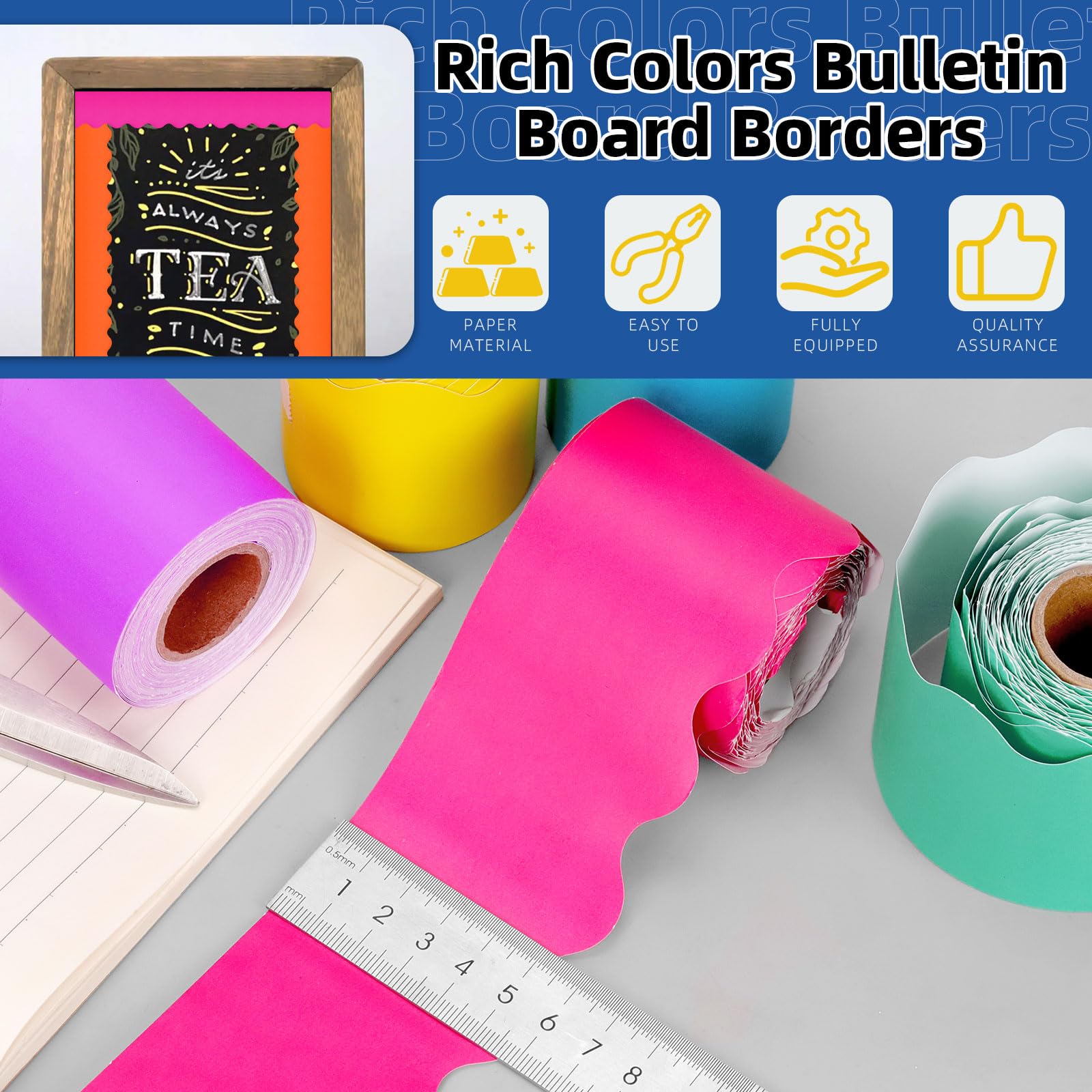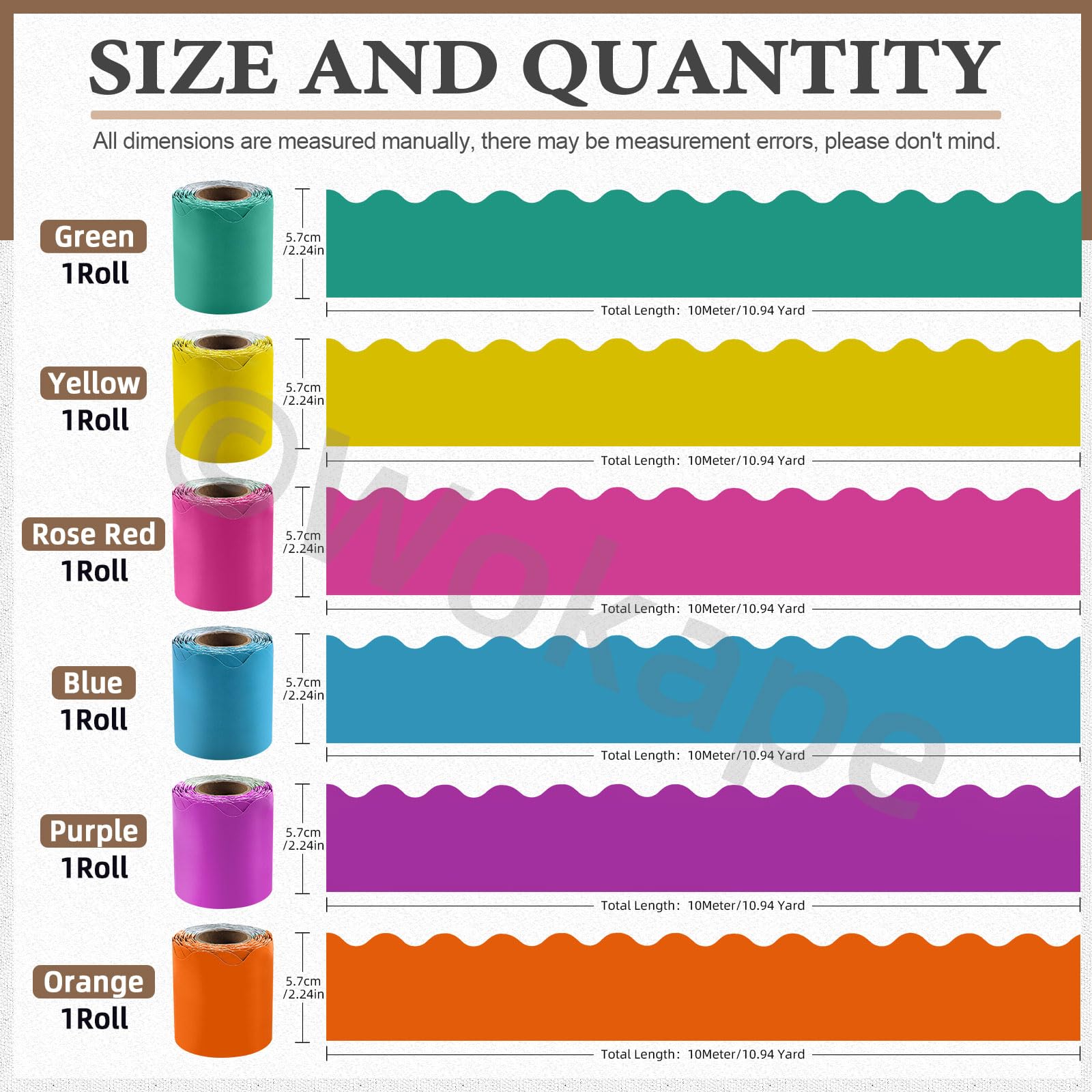 ※Mesure manuelle, s'il vous plaît laisser une petite erreur. Créez un look nouveau pour les panneaux d'affichage, les fenêtres, les murs et les projets de classe. Rendez votre salle de classe plus vive avec des décorations de bordure colorées, ajoutez une touche agréable et un look accrocheur à vos bordures de bulletin scolaire ou tableaux à crème, votre meilleur choix. Épaisse et fiable, imperméable et durable, pas facile à déchirer ou à déformer, pas de substances nocives, sûr à utiliser. ☛La bordure de la salle de classe est d'environ 10 m de long et de 5,7 cm de large. Créez un environnement amusant. Chaque rouleau de bordures de classe pastel est d'environ 10m de long et de 5,7cm de large, la longueur totale des 6 rouleaux atteint 60m. ♛ 【Application large】: Les bordures colorées pour les babillards d'affichage peuvent être utilisées pour décorer vos fêtes et salles. La taille suffisamment longue et la variété de couleurs peuvent facilement répondre à vos différents besoins décoratifs. Convient à l'extérieur ou à l'intérieur, tels que des tableaux blancs, des planches de liège, des armoires, des armoires de stockage, des murs, des fenêtres, des placards, etc. Bordure Décorative Jardin Bordures De Tableau D'Affichage Art Bordure Roulée Pour Tableau Blanc Mur Salle De Classe Papier Décoratif école Bureau Ce que vous obtenez]: Le forfait comprend 6 rouleaux de bordures de classe pastel, y compris rouge rose, jaune, violet, orange, vert et bleu Créez un style décoratif unique et laissez des souvenirs inoubliables. Chaque rouleau de bordures de classe pastel est d'environ 10m de long et de 5,7cm de large, la longueur totale des 6 rouleaux atteint 60m. La taille suffisamment longue et la variété de couleurs peuvent facilement répondre à vos différents besoins décoratifs ♛ 【Conception de ligne spéciale】: Contrairement aux lignes droites stéréotypées, cette garniture de bordure de salle de classe scallopée présente des lignes courbes flexibles pour représenter la vibrance. ♛ 【Facile à utiliser】 : La conception de garniture de bordure laminée à écaillage a 6 couleurs, exquises et colorées. Colorfast garniture pastel décoration tableau d'affichage vous donne la paix d'esprit pour une utilisation à long terme. 4 Rouleaux Bordure Autocollants Tableau Noir Décalque De Bordure Vous pouvez aussi le partager avec des amis. ☛ Les garnitures de tableaux d'affichage peuvent être attachées aux bords de tableaux blancs, de fenêtres, de tableaux à crème, de portes, d'armoires, de blocs-notes, etc. Vous pouvez en choisir un pour couper en différentes formes et tailles selon votre imagination et votre créativité. ☛Ces bordures de tableau d'affichage sont faites de papier de haute qualité qui résiste aux déchirures et aux déformations et est facile à couper, ce qui en fait un excellent matériau pour les décorations artisanales.