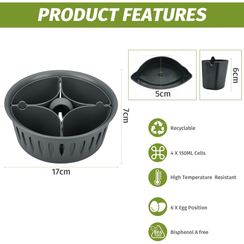 Cuisiner de manière créative : en plus des œufs pochés et des œufs durs, ce cuiseur à œufs peut également inspirer votre cuisine créative. Cela peut être facilement réalisé avec un cuiseur à œufs, qui peut cuire 6 œufs pochés ou 4 œufs pochés, tout en économisant de l'eau et du temps dans votre cuisine Vous n'avez pas besoin d'acheter un appareil supplémentaire, mais vous pouvez facilement l'installer et profiter du plaisir de cuisiner des œufs CUISINE CRÉATIVE En plus des œufs pochés et des œufs durs, ce cuiseur à œufs peut également inspirer votre cuisine créative. Cela vous ouvre encore plus de possibilités délicieuses Vous pouvez régler le temps de pochage à volonté pour obtenir des œufs mous ou durs (Si vous avez des problèmes lors de l'utilisation du produit, vous pouvez nous contacter, nous vous répondrons dans les 24 heures) Après utilisation, les moules peuvent être retirés et facilement nettoyés ou mis directement au lave-vaisselle pour maintenir l'hygiène Facile à nettoyer Les cuiseurs à œufs sont fabriqués à partir de matériaux de qualité alimentaire avec une excellente résistance à la chaleur. Embout spätzle (mixle) compatible avec Thermomix TM6, TM5, TM31 Vous n'avez pas besoin d'acheter un appareil supplémentaire, mais vous pouvez facilement l'installer et profiter du plaisir de cuisiner des œufs Cela ouvre des possibilités encore plus délicieuses. Polyvalence : ce cuiseur à œufs 2 en 1 combine les fonctions des œufs pochés et des œufs durs. Batch cooking pour débutants : le guide coplet pour cuisiner à l’avance et gagner du teps... Cuit Oeuf Electrique 2 En 1 Cuiseur à œufs, Cuiseur Oeuf Compatible Avec Thermomix TM5 TM6 TM31,Cuiseur à œufs Moule œufs Durs 6 Pièces Après utilisation, les moules peuvent être retirés et facilement nettoyés ou mis directement au lave-vaisselle pour maintenir l'hygiène.