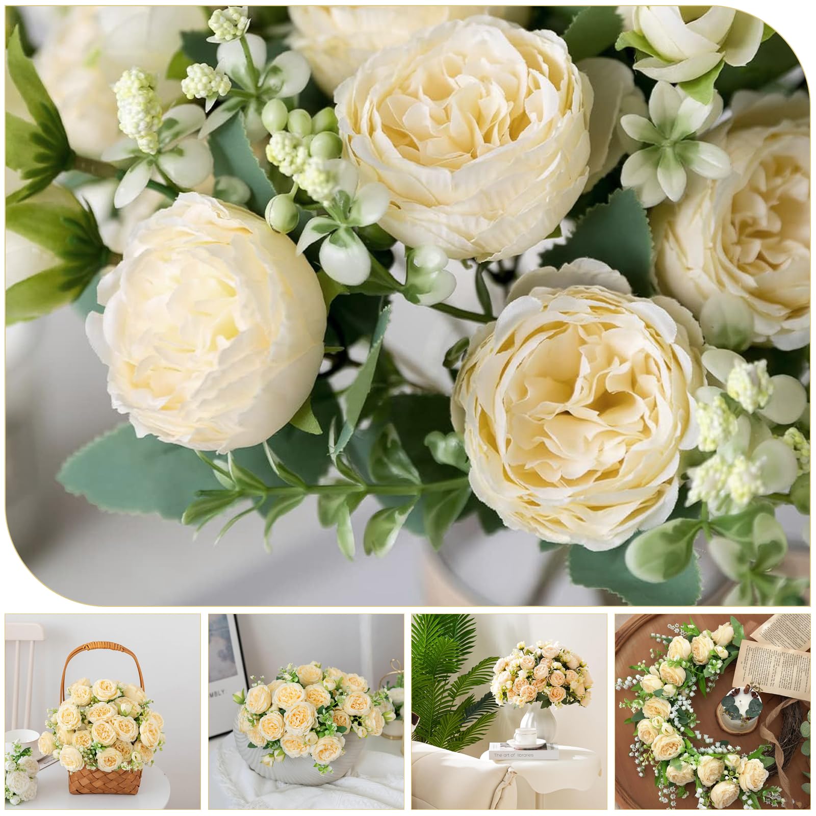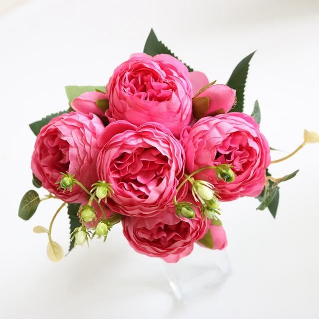 Bouquet de fleurs artificielles Pivoines Bouquet De MisFun 3 Pièces Pivoine Artificielle, Bouquet De Fleurs Artificielles, Faux Bouquet De Pivoines, Fleurs Artificielles Deco Fleurs En Soie, Pour La Décoration De Maison Nuptiale De Noce (Rose Foncé Pivoines Artificielles Ce bouquet de pivoines crée une atmosphère romantique et joyeuse pour votre maison, votre mariage ou votre fête. Matériaux de Haute Qualité: Fabriquées à partir de tissus de haute qualité, les fleurs sont généreuses et les pétales sont éclatants et naturels. Vous pouvez également démonter les pivoines bouquet fleur artificielle et les utiliser pour des projets DIY Bouquet de 10 Pivoines Artificielles | Plante Artificielle Déco Contenu: Vous recevrez 3 bouquets de pivoines fleur artificielle deco, chacun composé de 5 grandes pivoines d'environ 5,5 cm de diamètre, de 4 petites pivoines d'environ 3 cm de diamètre, ainsi que de quelques épis de fleurs et baies en forme de mousse. Les pivoines artificielles de qualité supérieure utilisent des matériaux haut de gamme, tels que la soie pour les pétales et le plastique pour les tiges, garantissant un rendu réaliste qui imite la texture et l'apparence des pivoines naturelles Largement Utilisé: La pivoine symbolise la prospérité et l'abondance, le romantisme et l'élégance, ainsi que le luxe et l'élégance. Décoration DIY: Grâce à l'utilisation de fil de fer doux comme matériau de tige, vous pouvez facilement plier et ajuster la position et la forme des fleurs selon vos préférences ou vos besoins de décoration.