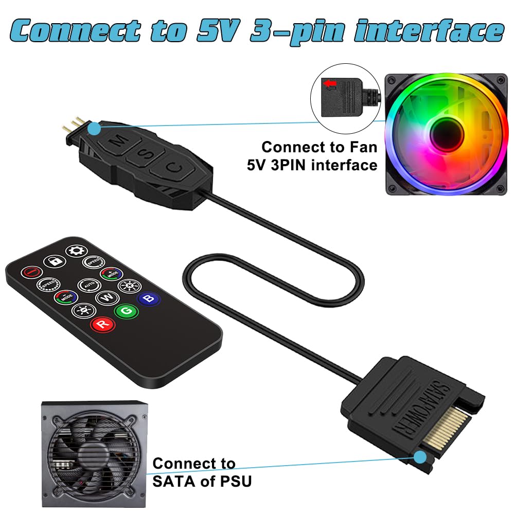 Le contrôleur ARGB 5V 3 broches avec télécommande est une solution idéale pour gérer les effets RGB dans votre boîtier PC. Contrôleur ARGB 5 V 3 broches : le contrôleur de ventilateur ARGB017 argb PC est livré avec un mode d'effet d'éclairage intégré, une alimentation SATA, prend en charge les modèles d'alimentation avec connecteur SATA Grâce à sa télécommande 14 touches, vous pouvez facilement ajuster les modes, la luminosité et les couleurs. Câblage: 1 x câble splitter ARGB 1 vers 3 inclus Format Compact et Pratique: Ce contrôleur ARGB compact s’intègre facilement dans les boîtiers. Hub Rgb Pc Contrôleur ARGB Avec Télécommande, Hub RGB 5V 3 Broches Hub SATA ARGB Caractéristiques techniques: Interface de lumière: 3 broches, 5V DC Contrôle Polyvalent avec Télécommande: Ce contrôleur ARGB offre un contrôle sans fil fluide des effets RGB, avec 14 touches pour régler les modes, la luminosité et les couleurs – idéal pour personnaliser votre PC gaming. Hub RGB Alimenté par SATA: Le hub ARGB 5V est alimenté par connecteur SATA, assurant un fonctionnement stable, sans besoin d’adaptateur, compatible avec la plupart des boîtiers et systèmes ARGB PC. Alimentation: par port SATA Contrôleur Argb, Alimentation Sata 15 Broches Vers Argb 5 V 3 Broches Télécommande: 14 touches (M pour modes, S pour luminosité, C pour couleurs) Thermalright – HUB d'éclairage de ventilateur ... – Grandado