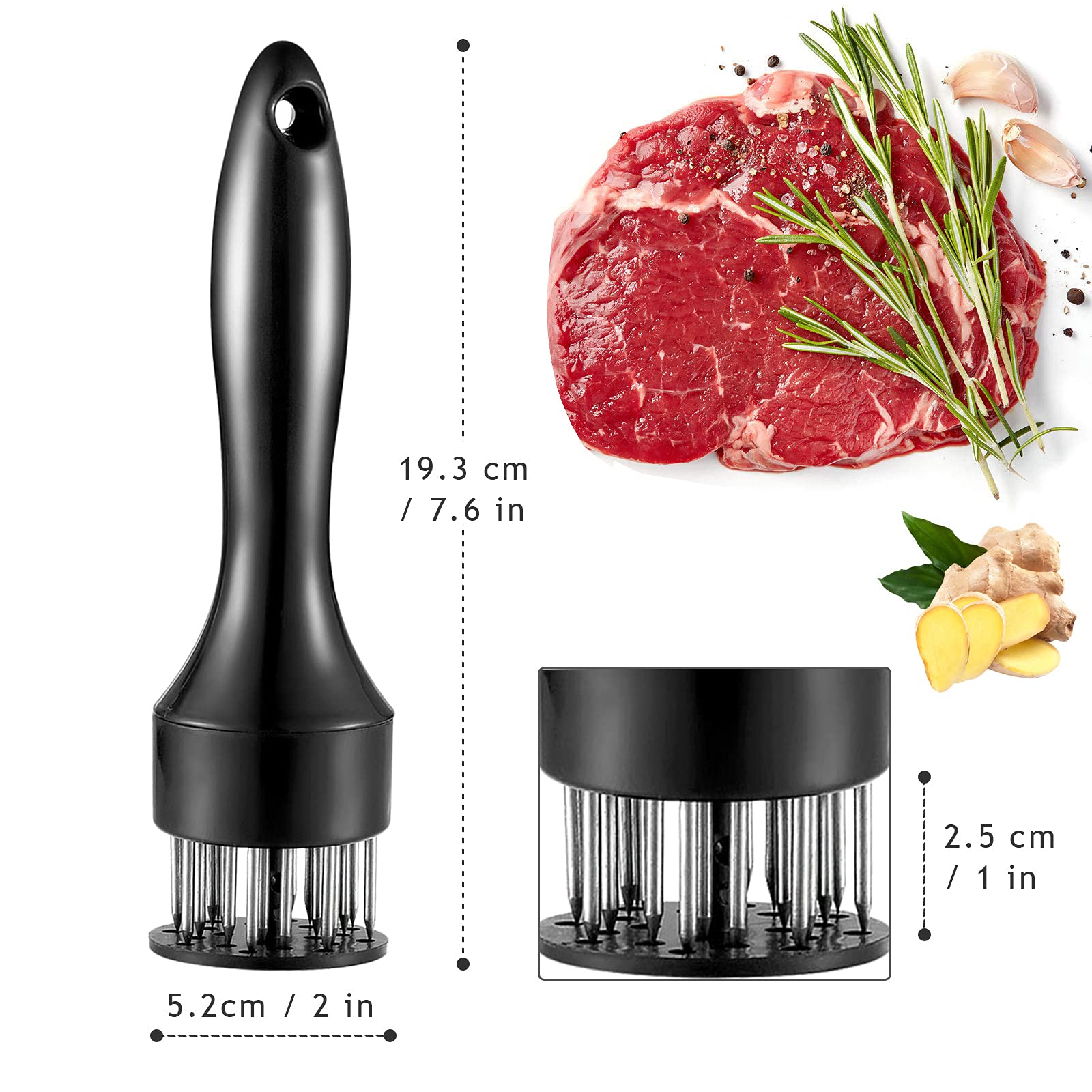 Caractéristiques du produit : ● Matériau : Acier inoxydable ● Couleur : Noir ● Dimensions : 13 x 3,8 x 13,3 cm/5,1 x 1,4 x 5,2 po ● Poids : 200 g/7 oz ● Dimensions du colis : 25 x 15 x 3,5 cm/9,8 x 5,9 x 1,3 po ● Poids du colis : 265 g/9,3 oz Contenu du colis : ● 1 attendrisseur à viande - Noir ● 1 brosse de nettoyage Idéal pour attendrir et mariner la viande, pour une cuisson homogène et juteuse. Matériau : avec des lames en acier inoxydable et un manche robuste en plastique, ce qui permet de transpercer rapidement la viande. Attendrisseur De Viande, Attendrisseur De Steak Tranchant En Acier Inoxydable A 48 Broches Filet De Viande Roti Aiguille A Steak Pour Attendrir 97403388 Polyvalent : ses lames ultra-tranchantes pénètrent sans effort dans les viandes épaisses et sont parfaites pour les steaks, la poitrine de bœuf, les blancs de poulet, les côtelettes de porc, l'agneau et le magret de canard. Attendrisseur de viande - Outil de cuisine professionnel de qualité commerciale 48 lames en acier inoxydable tranchantes pour steak, poulet, poisson, porc - Attendrisseur de viande avec verrouillage Visitez la boutique lasting charm 4,3 (1 916 Attendrisseur De Viande Avec 48 Lames à Aiguilles Ultra Tranchantes En Acier Inoxydable Un Appareil De Cuisson Robuste Pour Attendrir Le Boeuf La Dinde Le Poulet Le Steak Le Veau Le Porc Le Pois 90494659 Attendrisseur à viande Westmark 35 lames