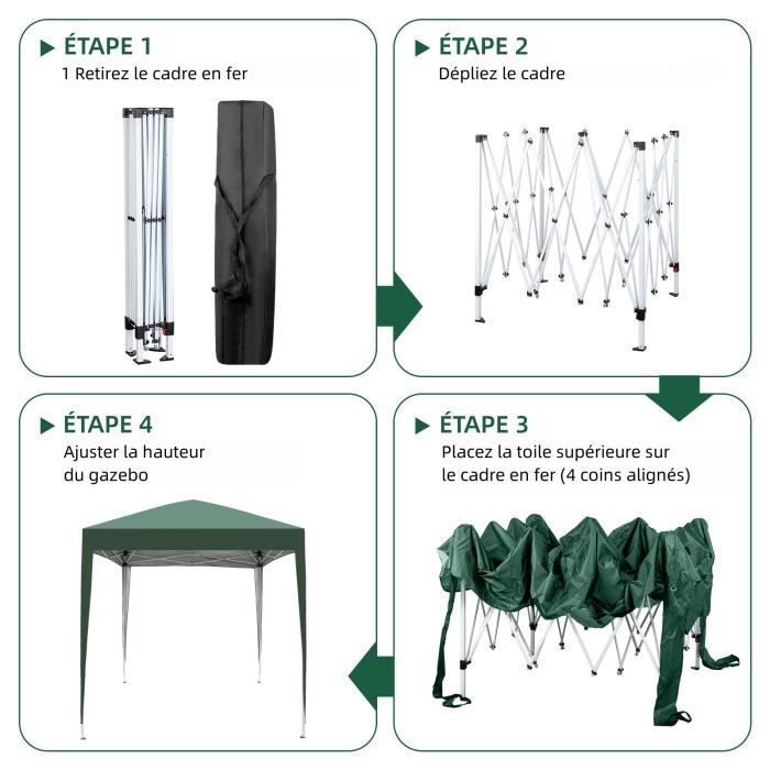 D’ailleurs, la hauteur de cet abri extérieur peut être ajustée entre 220, 230 et 240 cm en fonction de vos besoins, apportant plus de commodités. La structure métallique renforcée, les 8 piquets de terre et les 4 cordes à vent garantissent une stabilité optimale, et la hauteur réglable entre 220, 230 et 240 cm apporte plus de commodités Vous cherchez un abri extérieur fiable et polyvalent ? Alors prenez cette tonnelle instantanée en considération ! La structure métallique renforcée garantit également une robustesse et une stabilité accrue, vous pouvez l’utiliser en toute confiance. Cette tente de toit escamotable convient pour de diverses occasions d’utilisation tels que les salons, les affaires, les fêtes d’art, les pique-niques, le camping, le sport ou d’autres événements en plein air. Large application : Nous vous offrons 2 couleurs (gris/blanc) au choix. Elle convient pour de diverses occasions d’utilisation tels que les salons, les affaires, les fêtes d’art, les pique-niques, le camping, le sport ou d’autres événements en plein air., N’hésitez pas ! Tente De Réception Dépliable Tonnelle De Jardin 3x3m Gris Tente Pliable Pour Jardin Exterieur Camping 94605455 Conception ouverte & Hauteur ajustable : La conception sans parois permet une vue dégagée ainsi qu’une approche de la nature. Dotée d’un design Pop-up, cette tente peut être montée facilement. Le revêtement argenté du tissu résiste aux intempéries, assurant une protection solaire efficace et une résistance inégalée à la décoloration. TONNELLE DE JARDIN 3x3m Pliante Pavillon Tente Gazebo Auvent Portable... Pergola 2x2 Tillvex Tonnelle De Jardin 3 X 3 M Pliable | Tente Pliante à Hauteur Réglable | Auvent Pour Camping, Festival, Plage | Protection UV 50+ | Chapiteau Avec Sac Tente De Protection Solaire Avec Piquets Et Cordes BONS POINTS: Tente de toit bloque efficacement les rayons UV nocifs pour un abri fiable en plein air Tissu Oxford de qualité avec revêtement argenté pour une forte résistance aux déchirures 3 hauteurs réglables : 220/230/240 cm, changer la hauteur en fonction de vos besoins 8 piquets de terre et 4 cordes à vent aident à fixer fermement la tonnelle au sol Conception sans parois permet une vue dégagée ainsi qu’une approche de la nature Structure Pop-up innovante pour un montage rapide Parfaite pour le camping, les fêtes de jardin ou tout autre événement en plein air INFOS SPÉCIFIQUES: Couleur : Gris/Blanc Matériau : Tissu Oxford, Revêtement Argenté, Métal, Plastique Dimensions Totales : 201 x 201 x 220/230/240 cm (L x l x H) Poids Net : 11,3 kg CE QUI VOUS RECEVREZ: 1 x Tonnelle Pop-up Instantanée 1 x Sac de Transport 4 x Corde Coupe-Vent 8 x Piquet de Terre 1 x Manuel de l'utilisateur