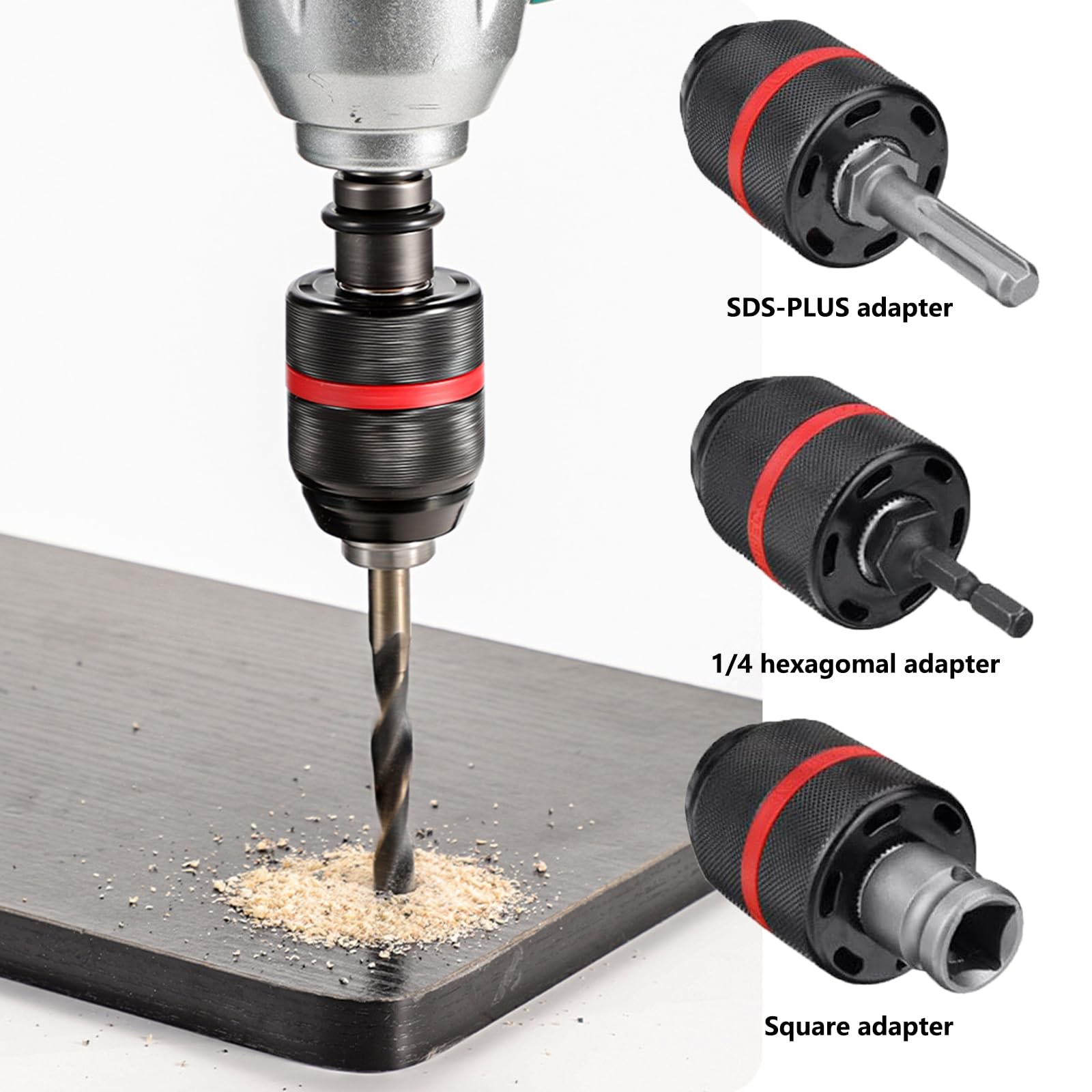 Cela garantit une prise sûre sur le foret, empêchant tout glissement ou oscillation pendant le fonctionnement. Serrez-le simplement solidement et vous êtes prêt à partir, ce qui vous fera gagner du temps et des efforts lors de vos tâches de perçage., 2., Connexion stable et fiable : la construction précise du mandrin de perçage assure une connexion étanche et stable entre le mandrin et la perceuse. Le traitement fin et rigoureux du mandrin contribue également à sa longue durée de vie., 3., Construction durable : fabriqué en ABS de haute qualité et en acier à haute teneur en carbone, ce mandrin de perçage est résistant à l'usure et très durable. 1 mandrin de perceuse sans clé à serrage automatique en acier de 113 mm 1/2 et mandrin MT2B16 Cet adaptateur de conversion transforme le tournevis à percussion en un puissant outil de perçage, vous offrant une polyvalence accrue dans vos projets., 5., Large plage de serrage : le mandrin de perçage a une large plage de serrage de 2 à 13 mm, s'adaptant à différentes tailles de forets. Mandrin de perçage autobloquant sans clé, 2-13mm, 1/2 ", 20unf, auto-serrant, adaptateur de mandrin de perceuse 1/2" pour la Conversion de clé à chocs 1/2-20unf Mandrin Perceuse Amazon Mandrin De Perceuse à Serrage Automatique - SURENHAP - 13 Mm - Filaire - Sans Clé Moleté Mandrin Autobloquant Filetage 1/2 Plage 2-13mm Français :Mandrin de perceuse utile : ce mandrin peut fixer divers forets sur votre perceuse pour mieux répondre à vos différents besoins de travail, efficace et sans effort.: La conception sans clé et auto-serrante assure une grande stabilité sous une vitesse de travail élevée, et la fixation ferme ne se desserrera pas.Large pour la correspondance : le mandrin de perceuse a une large...