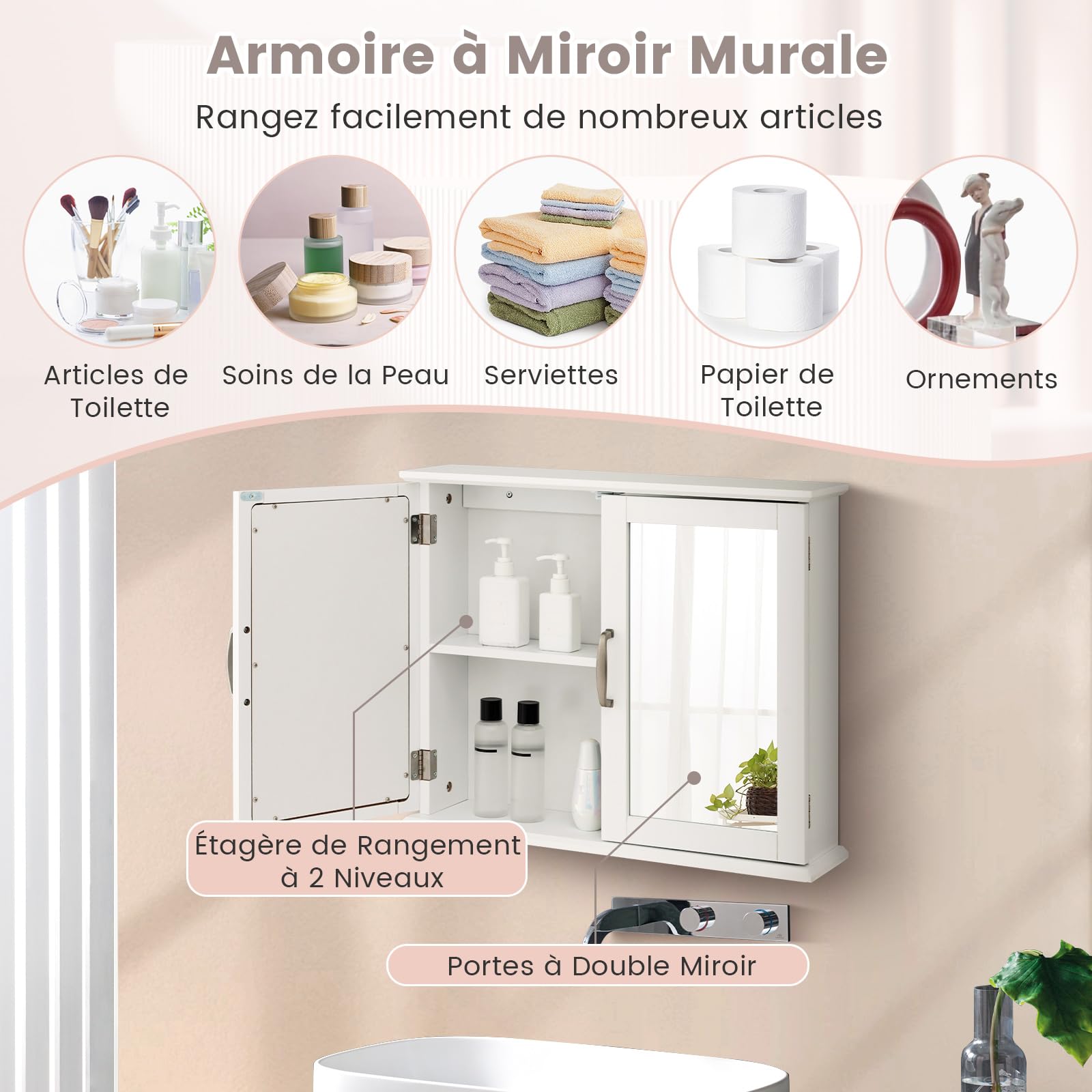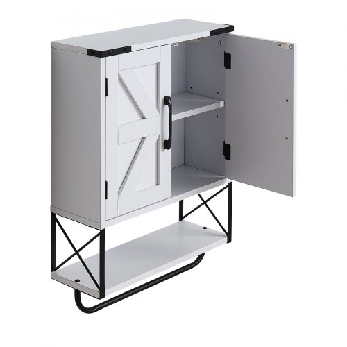 【Construction Fiable】Fabriquée en bois d’ingénierie épais et quincaillerie haut de gamme, cette armoire à pharmacie possède un cadre résiste aux chocs et peut supporter de grosses bouteilles de shampoing sans se déformer Caractéristiques : Étagère réglable en 3 positions adaptée à différentes tailles d’articles Espace ouvert avec étagère spacieuse et barre suspendue pour les routines matinales Armoire bien conçue style ferme s’adaptant à tout thème décoratif Protections d’angle métalliques alliant style et fonction Design portes de grange pour une touche rustique Fermeture magnétique gardant les portes bien fermées Armoire murale peu encombrante adaptée à plusieurs usages Spécifications : Couleur : Blanc Matériaux : Bois d’ingénierie, MDF, métal Dimensions totales : 60,5 x 20 x 72,5 cm (L x l x H) Hauteur réglable de l’étagère : 3 cm Capacité de charge par étage : 30 kg Poids net : 11 kg Contenu de l'emballage : 1 x Armoire murale de salle de bain 1 x Manuel d’utilisateur Armoire Peu Encombrante]Cette armoire murale convient pour les petites salles de bain. Elle associe une étagère ouverte à une barre pour serviettes afin que chaque flacon de médicament, pot de soin, article de toilette et serviette de bain trouve sa place dédiée L’étagère à 2 niveaux à l’intérieur de l’armoire supérieure, l’étagère flottante ouverte et le porte-serviettes en métal inférieur vous offrent un grand espace de rangement 【Étagère Réglable】Ce meuble wc suspendu dispose d’un placard qui comprend une étagère réglable sur 3 positions pour adapter rapidement la hauteur aux bouteilles de bain de grande taille ou aux petits sérums. COSTWAY Armoire suspendue salle de bain, armoire de salle Des fermetures magnétiques maintiennent les portes bien fermées 【Style Ferme Rustique】Les portes de grange rustiques, les charnières métalliques vintage et les protections d’angle décoratives apportent un charme rustique et rendent cette armoire salle de bain une pièce maîtresse fonctionnelle Meuble Rangement étagère Réglable COSTWAY Armoire Murale De Salle De Bains Armoire à Pharmacie Avec 2 Rangement Salle De Bain Barre Serviettes 【Armoire Peu Encombrante】Cette armoire murale convient pour les petites salles de bain. Son design rustique charmeur avec portes de grange et charnières vintage fait plus que ranger : il sublime votre décoration. Que ce soit dans la salle de bain, la buanderie, le salon ou la cuisine, cette armoire polyvalente libère de la place au sol et rehausse n’importe quel intérieur.