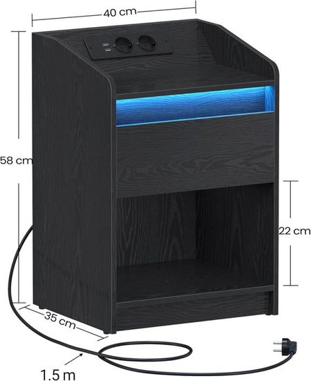La couleur de la lumière, la luminosité et le mode stroboscopique de la table de chevet LED peuvent être ajustés selon vos besoins. table d'appoint de rangement à 3 niveaux avec étagère en maille, pour salon, dortoir, canapé, noir. 4,4 sur 5 étoiles 1 547. 1 offre à partir de 54,99 Table de chevet avec station de charge : pour répondre aux besoins de charge, cette table de chevet avec station de charge dispose d'un design moderne plug-in. Deux tiroirs en tissu avec poignées offrent de la place pour les objets personnels et rarement utilisés et vous aident à organiser vos affaires. Nous nous occupons de l'échange. Table De Chevet Etroite Hzuaneri Tables De Nuit Avec Lumières LED Et Station De Recharge, Table Table De Chevet Design Moderne Elle dispose de deux prises et de deux ports USB sur lesquels vous pouvez charger des lampes, des téléphones portables et des tablettes en même temps. Individualité et stabilité : notre table de chevet est fabriquée en panneau de particules et en métal carbone. Le design du tiroir en tissu de la table de chevet offre non seulement un espace de rangement parfait, mais réduit également considérablement le poids. Grand espace de rangement : la table de chevet à quatre étages avec deux tiroirs en tissu offre un espace de rangement. Table de chevet avec lumières LED noir 40x39x37 cm Excellent RUIDA Le plateau supérieur et l'étagère ouverte offrent de la place pour les objets courants tels que les décorations, les livres, les consoles de jeux, etc. Table de chevet avec led : la sélection produits Leroy Merlin de ce jeudi au meilleur prix ! Retrouvez ci-après nos 10000 offres, marques, références et promotions en stock prêtes à être livrées rapidement dans nos magasins les plus proches de chez vous