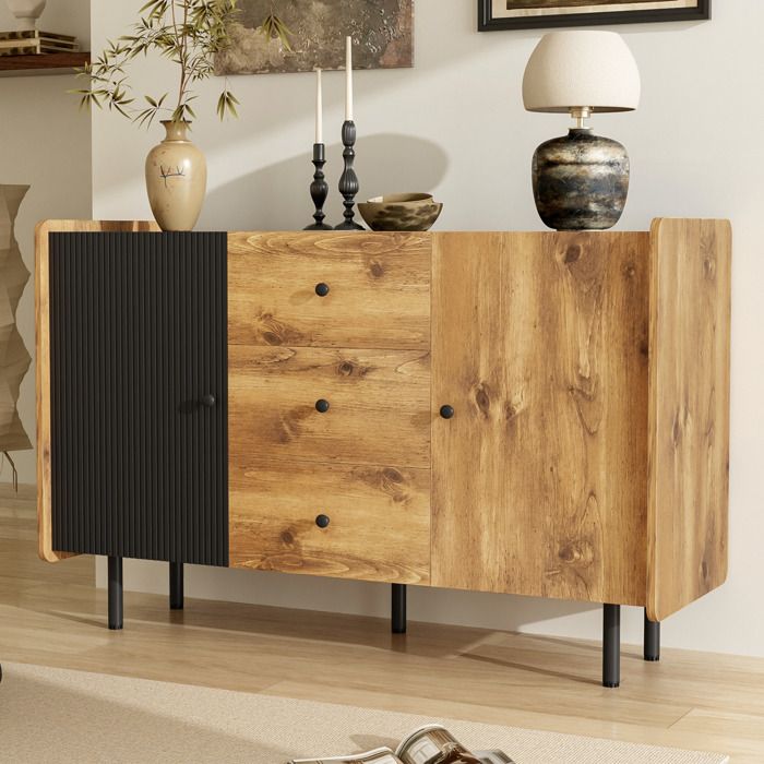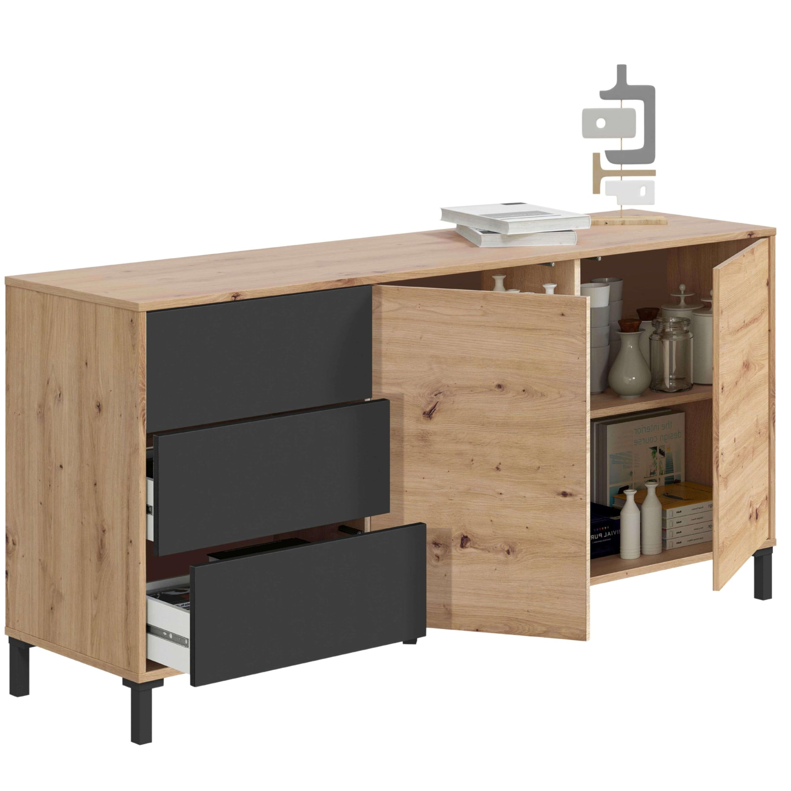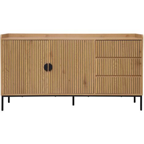 Capacité des tiroirs : 10 cm (hauteur) x 45 cm (largeur) x 30 cm (profondeur) Combinable avec le reste de la collection de salon Brooklyn. Ne pas surcharger le meuble pour éviter les blessures. Buffet 2 portes et 3 tiroirs Brooklyn - L154cm Découvrez notre buffet bi ton blanc et couleur bois clair pour créer un style contemporain et organiser vos affaires dans ses 3 larges tiroirs, et ses deux espaces fermés par 2 portes Le buffet Brooklyn est idéal pour ranger ce que vous voulez, vaisselle, accessoires et documents, aussi bien dans le salon que dans le bureau ou même la cuisine. Habitdesign Brooklyn Buffet Couleur chêne canadien et rouille 154 cm Également 3 tiroirs, sur la partie droite, avec glissières coulissantes métalliques pour les tiroirs (non amovibles). Fabriqué en thermoplastique de haute résistance de couleur noire et 10,5 cm d'altrua. Meuble Aggloméré Mélaminé Durable Buffet 2 Portes Et 3 Tiroirs En Chêne Et Anthracite - Follow Buffet Chêne Nodi Gris Anthracite Dimensions du buffet : 154 x 74 x 41 cm. Description du produit Meuble buffet 2 portes avec étagères intérieures et 3 tiroirs à droite et pieds en bas. Avertissement De Sûreté Assemblage sous surveillance d'un adulte.