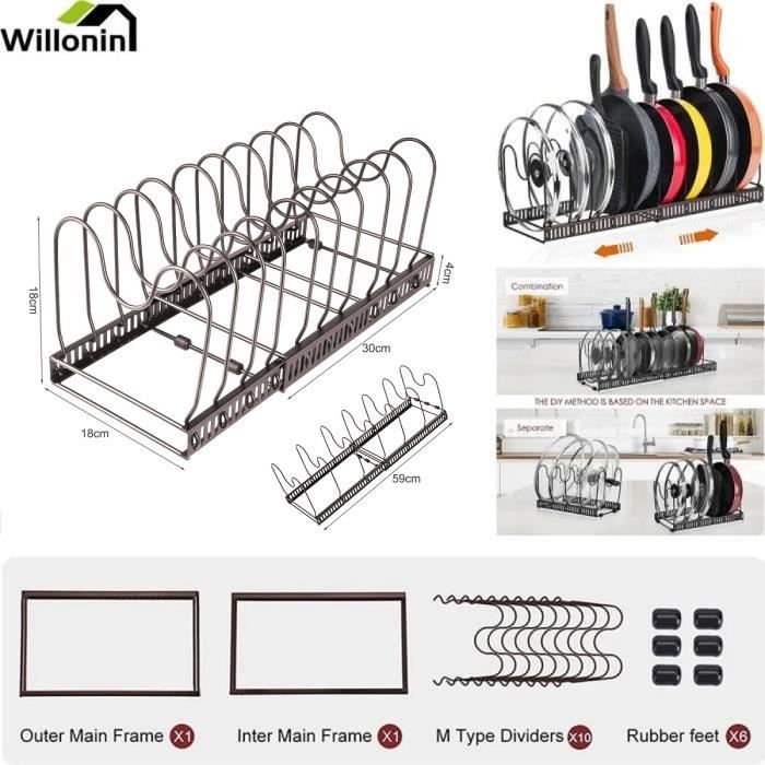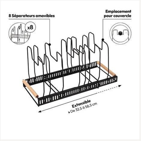 Support Poêles Capacité 8 Assiettes Égouttoir Extensible Noir - 5FIVE Rangement Casseroles Extensible Rack extensible poêles/casseroles - 5five Dimensions : L. 58,5 x P. 18 x H. 21 cm. Poids : 1,1 kg. Matière du produit : Fer, Hévéa Capacité : 8 assiettes extensible : Oui Dimensions : L., 58,5 x P., 18 x H. Rack Multiusos para Cocina Repisas para Horno de Microondas ZKS-05