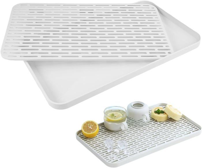 Résistant aux bactéries et facile à nettoyer, tapis d'égouttement pour vaisselle un accessoire de cuisine indispensable pour un usage quotidien à la maison, en pique-nique et en camping Il est particulièrement adapté aux environnements très humides ou aux cuisines très fréquentées., 2., Le vaisselle de tapis d’égouttement présente une conception structurelle innovante avec de larges nervures surélevées régulièrement espacées sur sa surface, empêchant efficacement les tasses et les assiettes de glisser et de basculer. Ces nervures tridimensionnelles créent de multiples canaux de ventilation entre la vaisselle et le tapis evier, favorisant la convection naturelle et permettant à l'humidité de s'évaporer rapidement du fond de la vaisselle. Outre le séchage de la vaisselle, il peut également servir de plan de travail, d'égouttoir à casseroles, de dessous de plat, de tapis de réfrigérateur ou de tapis pour gamelles d'animaux. tapis evier cuisine egouttoir parfait pour un lavage et un séchage centralisés. Tapis De Séchage Vaisselle VIDSTW Tapis Egouttoir Vaisselle Absorbant Avec Des Trous 43 X 33 Accessoire De Cuisine Antidérapant Facile à Nettoyer : Tapis d'égouttement en silicone surface dense et lisse résiste aux taches, à la prolifération bactérienne et aux odeurs lors d'une utilisation quotidienne. Léger, avec un poids de seulement 225 g, il est facile à déplacer et à ranger, offrant une utilisation flexible et pratique Les couleurs peuvent varier légèrement en fonction des écrans. Taille Idéale : Ce tapis vaisselle egouttoir mesure 43 cm x 34cm, offrant un grand espace de rangement et pouvant accueillir facilement plusieurs plats, verres, couvercles de casseroles et ustensiles de cuisine. Taille Idéale : Ce tapis vaisselle egouttoir mesure 43 cm x 34cm, offrant un grand espace de rangement et pouvant accueillir facilement plusieurs plats, verres, couvercles de casseroles et ustensiles de cuisine.tapis evier cuisine egouttoir parfait pour un lavage et un séchage centralisés tapis egouttoir surface inclinée du tapis d'égouttage facilite la circulation de l'air sous la vaisselle, créant une excellente ventilation et accélérant le séchage. Matériau de Haute Qualité : Ce tapis d'égouttement est soigneusement fabriqué en silicone alimentaire, résistant aux hautes températures et durable, ce qui le rend sûr pour une utilisation en contact direct avec la vaisselle. tapis auto sechant suffit de le rincer à l'eau claire pour un aspect neuf et propre. Cela garantit un séchage efficace, même par temps humide ou dans des cuisines mal ventilées., 3., Le tapis d'égouttage de vaisselle présente une excellente élasticité et une excellente résistance au pliage, éliminant ainsi le risque de l'endommager en le pliant ou en l'enroulant. Egouttoir Vaisselle Absorbant Avec Des Trous Tapis Vaisselle Absorbant 43 X 33,5 X 0,45 CM Dish Drying Mats Silicone Abtropfmatte Geschirr Égouttement Rapide Tapis Egouttoir Vaisselle, Tapis À Vaisselle En Microfibre, Coussin De Placez simplement la vaisselle, les tasses et autres objets sur le tapis evier cuisine, et l'eau restante s'écoulera rapidement dans l'évier, évitant ainsi la stagnation