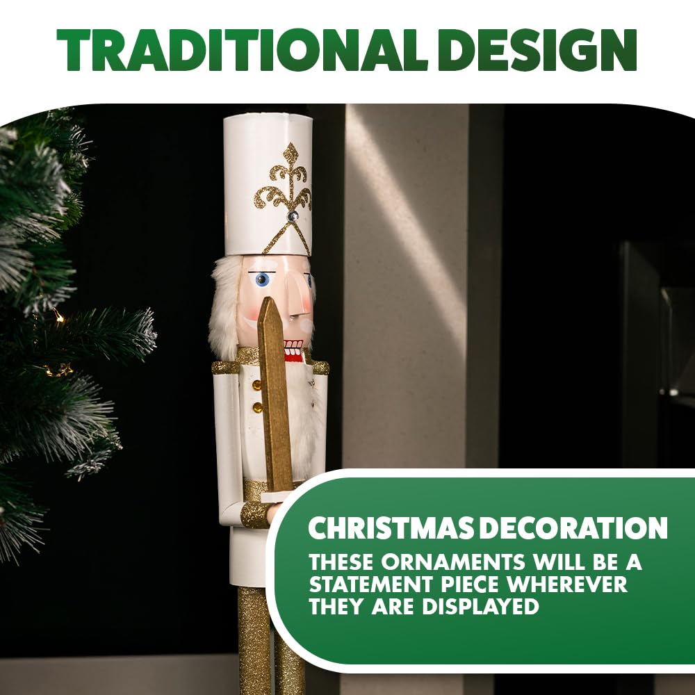 Magie des fêtes Apportez l'éclat de Noël à votre intérieur avec cette paire de décorations traditionnelles. Améliorez vos décorations de Noël avec la statue traditionnelle de soldat Casse-Noisette Marco Paul. Cette décoration d'intérieur casse-noisette dispose de 23 lumières LED enchanteresses, d'un fonctionnement pratique à piles et d'un savoir-faire exquis peint à la main Description du produit : Grand casse-noisette de Noël blanc – Une charmante alternative aux casse-noisettes ordinaires, ces versions traditionnelles Jumbo scintillantes offrent un plaisir de Noël accrocheur Mesurant 70 cm de haut, cette décoration de Noël sera une pièce de déclaration, où qu'elle soit exposée. Avec des détails peints à la main et une construction en bois, cette décoration de Noël autoportante est la décoration idéale pour près de votre cheminée ou arbre de Noël. Durable : fabriqué avec soin et attention aux détails à partir de construction en bois solide et résistant, cette superbe décoration casse-noisette est également peinte à la main Fini dans des couleurs primaires audacieuses et avec des paillettes complexes et des détails dorés sur toute la surface, cette décoration sur pied répandra la joie festive où qu'elle soit placée Décoration festive : pour une utilisation en intérieur, cette superbe décoration debout fera un impact lorsqu'elle est placée au pied d'un escalier, près d'un arbre de Noël ou dans un hall d'entrée pour accueillir vos invités Ce casse-noisette unique de style traditionnel est une décoration de sol parfaite et unique. Avec des détails peints à la main et une construction en bois, cette décoration de Noël autoportante en bois soldat est la décoration idéale à côté de votre cheminée ou arbre de Noël. Nutcracker soldier images libres de droit, photos de Nutcracker soldier Avec un tambour, des barbes en fourrure et des cheveux, ces ornements sont pleins de charme de Noël et de style traditionnel. Magie des fêtes : apportez l'éclat de Noël à votre maison avec cette décoration traditionnelle. Détails incroyables Les détails peints à la main rendent ces casse-noisettes géants spéciaux. Casse-noisette Jumbo : une charmante alternative aux casse-noisettes ordinaires, ces versions traditionnelles jumbo scintillantes offrent un plaisir de Noël accrocheur Impressionnants, uniques et insolites dans le style et avec quelque chose à voir sous tous les angles, ils sont frappants où qu'ils soient affichés Casse-noisette Noël Grande Statue De Soldat Casse-noisette Marco Paul Peinte à La Main Hauteur 70 Cm Pièce Maîtresse Décoration de Noël : pour une utilisation en intérieur, cette superbe décoration debout fera un impact lorsqu'elle est placée au pied d'un escalier, près d'un arbre de Noël ou dans un hall d'entrée pour accueillir vos invités Ce casse-noisette unique de style traditionnel est une décoration de sol parfaite et unique.