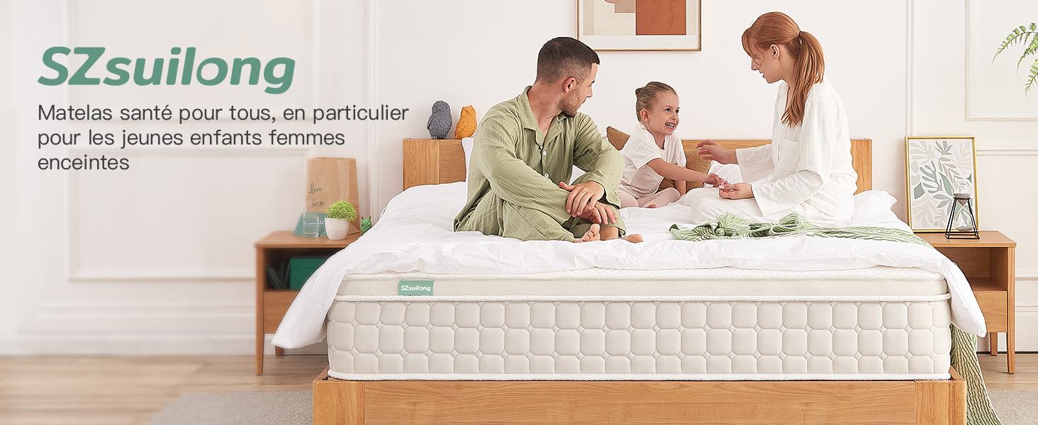 HAUTE RESPIRABILITÉ : la housse en tissu tricoté du matelas offre le toucher le plus doux et une sensation luxueuse. Ressorts ensachés à 7 zones : notre matelas divise les ressorts en zones scientifiques ergonomiques : tête et cou, épaules, taille et hanches, cuisses et mollets pour fournir un soutien uniforme et un soulagement de la pression. Matelas est fait de tissu tricoté de haute qualité et confortable avec une surface confortable et respirante. Sa mousse à mémoire de forme certifiée CertiPUR-US et sa construction hybride avec ressorts ensachés individuellement offrent un équilibre entre fermeté et douceur Matelas 100% ressorts, épaisseur 26cm, accueil moelleux Simmons... Le tissu tricoté respirant sur les côtés du matelas favorise la dissipation de la chaleur, et les ressorts indépendants en dessous améliorent la circulation de l'air, rendant le sommeil frais et confortable. Matelas hybride 180x200 cm avec mémoire de forme ASTRION ép.26 cm EXPÉDITION EN ROULEAU COMPRIMÉ : Les matelas sont livrés en rouleau comprimé, qui comprime le matelas dans une boîte pour faciliter le transport. Une fois le matelas déballé, nous recommandons de sauter et de rouler doucement sur le matelas, puis de le retourner et de le laisser reposer jusqu'à 72 heures pour que le matelas soit complètement déplié et dans des conditions optimales. Mousse Mémoire De Forme Certifiée SZSUILONG Matelas Hybride 180x200, Épais 30cm, Ressorts Ensachés Matelas Ressorts Ensachés 7 Zones Matelas Motion Silence : Les ressorts ensachés sont soigneusement enveloppés dans de la mousse de feutre. 1 Tissus Confortables 2 Mouvement Silencieux 3 Bon Soutien Sa mousse à mémoire de forme certifiée CertiPUR-US et sa construction hybride avec ressorts ensachés individuellement offrent un équilibre entre fermeté et douceur.