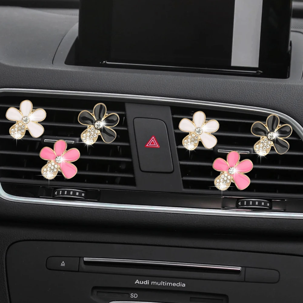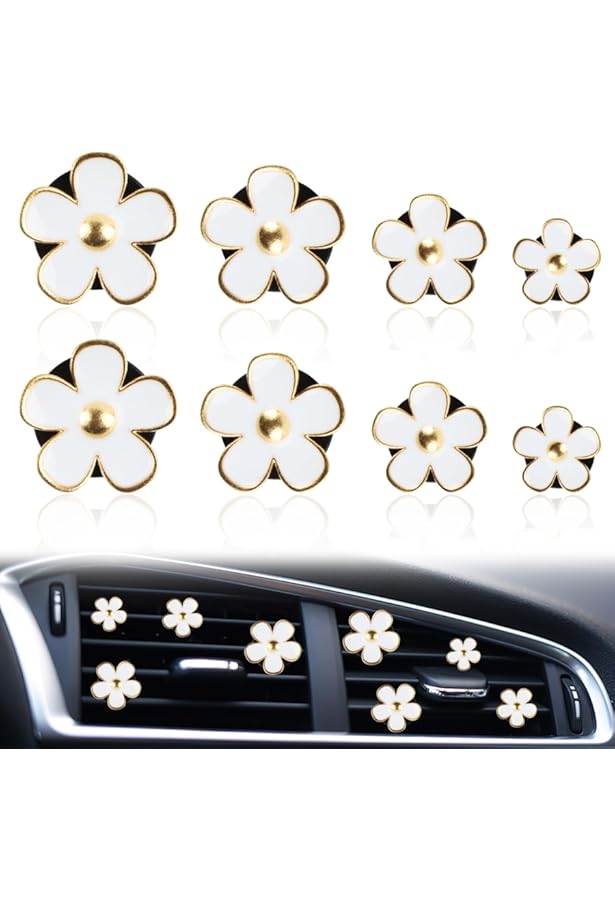 Il suffit d’ajouter quelques gouttes d'huiles essentielles sur le coton, et le parfum se diffuse lentement pour créer une atmosphère agréable dans votre véhicule Ce lot est idéal pour ceux qui souhaitent profiter d'une atmosphère agréable et relaxante dans leur véhicule tout en embellissant l’intérieur avec un accessoire élégant. Le parfum se diffuse progressivement, apportant une touche de fraîcheur et une ambiance apaisante à chaque trajet. C’est un excellent choix pour toute personne cherchant à personnaliser son espace de manière chic et fonctionnelle Pratique et décoratif : Ce clip désodorisant de voiture offre une solution à la fois esthétique et pratique. Désodorisant Huiles Essentielles Decoration Voiture Interieur Lot De 6 Désodorisants En Forme De Marguerite Avec Strass Pour Décoration Intérieure, Accessoires De Décoration En Diamant Pour Femmes Et Filles Voiture Decoration Cadeau Automobiliste Pratique Sa surface protégée minimise les frottements et évite les rayures sur les grilles d’aération de votre voiture Il améliore l'air de votre voiture tout en agissant comme une déco voiture intérieur élégante et moderne. Conçu à partir de matériaux résistants, ce désodorisant de voiture est fabriqué en alliage de qualité. Offrez-le à vos proches pour apporter une touche de décoration intérieure élégante et un parfum agréable à leur voiture Clip Pour Grille D'Aération De Voiture Désodorisant Pour Voiture... Ajoutez une touche de fraîcheur et de style à l’intérieur de votre voiture avec ces 8 désodorisants de voiture à clip en forme de marguerite. Avec leur design en forme de marguerite, ces clips sont parfaits pour créer une ambiance apaisante et rafraîchissante dans votre voiture Parfait pour un cadeau : Ce désodorisant de voiture en forme de fleur de marguerite est non seulement un accessoire fonctionnel, mais aussi une idée de cadeau idéale pour les femmes. Il n’y a pas de risque de débordement ni de parfum trop intense. Vous recevrez 8 clips de ventilation pour désodorisant de sortie d'air en forme de marguerite et deux paquets de tampons parfumés, divisés en quatre tailles, adaptés aux sorties d'air de différents modèles 8 pièces marguerites, fleurs, clip de ventilation, marguerites, fleur, désodorisant de Matériaux résistants : Fabriqué en alliage de qualité, le clip désodorisant de voiture est solide, résistant à la rouille et à la corrosion.
