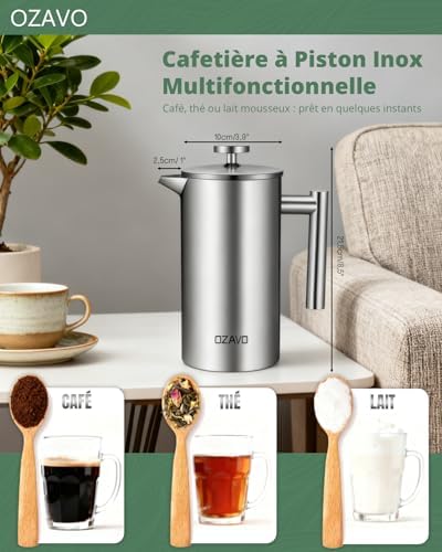 French Press Double Paroi Maintien Chaud Tiken Cafetière à Piston Thermos 1L Inox Isotherme Double Paroi Cafetière Lave-vaisselle Lavable au lave-vaisselle : Tous les composants sont lavables au lave-vaisselle pour un nettoyage ultra-simple. Pour les amateurs de café, la cafetière à piston isotherme est un incontournable. Grâce à son système de filtration par pression, elle permet d'obtenir un café riche en arômes et en saveurs. L'avantage de la version isotherme est qu'elle maintient votre café chaud pendant une longue période, vous permettant ainsi de déguster une tasse de café toujours à la température idéale... HEEMBURG Cafetière à piston French Coffee Press 1 l - Thermos en acier inoxydable de qualité supérieure avec filtre supplémentaire - Cafetière isolée à double paroi pour un café et un thé parfaits Fini les soucis de casse ! Gagnez du temps et profitez plutôt d'un bon café. Mug Thermos Porsche isotherme laqué noir WAP0500630H - Selection RS Que ce soit pour un café fort le matin à la maison ou en camping, cette robuste cafetière à piston portable vous offre d'infinies possibilités. Tiken French Press Coffee Maker Gardez votre café chaud pendant des heures : La cafetière à piston Tiken est équipée d'une véritable isolation sous vide du fond jusqu'au bec verseur pour garder votre café ou thé premium chaud pendant des heures, tandis que l'extérieur reste frais. Elle est incassable, anti-rouille et prévue pour un usage quotidien pendant des années. Vous pouvez déguster tranquillement jusqu'à la dernière goutte. Portable et facile à utiliser : Ajoutez simplement votre café moulu torréfié, versez l'eau chaude, laissez infuser 3-4 minutes environ, puis pressez doucement et dégustez. Les filtres se détachent facilement pour un rapide rinçage ou remplacement. Café chaud Les machines à café tiken French Press sont équipées d'une véritable technologie d'isolation sous vide, du sol à la buse, qui maintient votre café ou votre thé chaud pendant des heures.