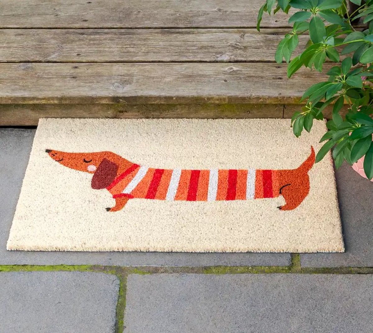 Il s'adapte avec style à n'importe quel environnement et donne à votre maison un caractère affectueux. Le paillasson MIJOMA au charmant motif chien apporte non seulement de l'ordre dans votre entrée, mais aussi une sensation chaleureuse de la maison. Fabriqué en fibre de coco robuste et naturelle, ce tapis est un outil fiable contre la saleté et l'humidité. Pour les propriétaires de chiens, les amoureux des animaux ou comme cadeau – le tapis pour teckel est toujours bien apprécié Des pattes, des os et un teckel fidèle : des détails ludiques qui assurent en même temps l'ordre dans l'entrée Tapis D'entrée Fibre De Coco Hello Paillasson Aspect Coco Antidérapant En Pvc Pour Intérieur Et Tapis Entrée Fibre De Coco 70x30 Que ce soit comme accessoire d'intérieur pratique ou comme cadeau créatif pour les fans de chiens, le paillasson MIJOMA Teckel allie qualité, humour et fonctionnalité dans un produit unique. Cadeau de caractère. Mais il peut être plus que fonctionnel : le motif de teckel ludique avec des empreintes de pattes et de petits os attire les regards et apporte de la bonne humeur aux animaux. Maintien sûr par temps venteux et intempéries. Versa Paillasson pour chien style contemporain, dimensions (H x L x L... Un teckel vous accueille, chaque jour à nouveau. Ce tapis est un point fort particulièrement pour les amoureux des animaux, que ce soit devant la porte d'entrée, dans le jardin d'hiver ou dans le couloir. Obtenez le sentiment de bienvenue chez vous avec un teckel fidèle à vos côtés. Le dos en PVC maintient le tapis en place de manière stable – pas de glissement, pas de torsion, même en cas de vent ou de pluie. Paillasson en fibres de coco décoré d’un teckel. Dimensions 70 × 30 cm, dessous PVC antidérapant. Idéal pour une entrée accueillante et originale Paillasson Anti-Saletés Rhine Tapis D'Entrée Avec Dos Antidérapant Facile à entretenir : il suffit de le secouer ou de l'aspirer pour qu'il retrouve son aspect neuf.