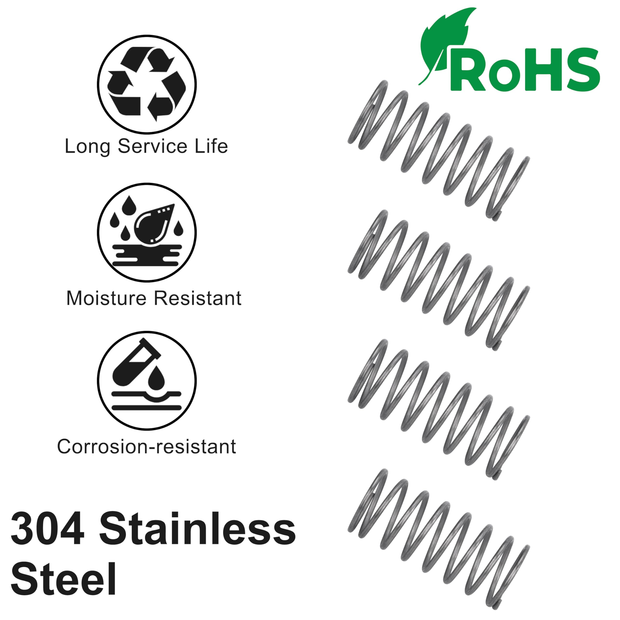 Solide et respectueux de l'environnement: Ressort de compression en acier inoxydable 304 importé du Japon et est conforme à la certification RoHS. -Excellentes performances, force de ressort maximale: environ 2,62kg(25,68N), longueur de compression maximale: 8,75 mm. Caractéristiques: -10 ressorts de compression, diamètre du fil: 1,3 mm, diamètre intérieur: 10 mm, longueur statique: 25 mm. -Fabriqué en acier inoxydable 304 de qualité supérieure, difficile à rouiller et à corroder, haute résistance et élasticité Choisissez toujours la dimension d'un ressort de façon à ce qu'il fournisse la course et la force souhaitées avec le plus petit effort possible. Cela permet de prolonger sa durée de vie Force maximale du ressort: 2,62kg(25,68N). Ressort Acier Inox 25mm GUNGY Ressorts Compression Acier Inox 10 Pièces - 25mm Longueur - Diamètre 10mm - Force 0.45KG Accessoire Bricolage électronique Haute élasticité: ressort de compression de haute précision, espacement uniforme, forte résilience et force stable, offre une résistance et une élasticité élevées Largement applications: largement utilisé dans les appareils électroménagers, les interrupteurs électriques, les équipements mécaniques, les outils électriques, les jouets, les tondeuses à gazon et d'autres domaines Ressorts Compression Acier Inox Ressort De Compression - FEDERNFABRIK SCHMID AG - Spiralé / En Acier Inoxydable / En Cuivre Ressorts Inox 304 10 Pièces Spécifications: Matériau: acier inoxydable 304 Couleur: couleur acier inoxydable Traitement de surface: poli Diamètre du fil: 1,3 mm Diamètre intérieur: 10 mm Longueur statique: 25 mm Force maximale du ressort: environ 2,62 KG (25,68 N) Longueur de compression maximale: 8,75 mm Taille: 1,3x10x25 mm Le forfait comprend: 10 pièces x ressort de compression Caractéristiques: -10 ressorts de compression, diamètre du fil: 1,3 mm, diamètre intérieur: 10 mm, longueur statique: 25 mm. -Fabriqué en acier inoxydable 304 de qualité supérieure, difficile à rouiller et à corroder, haute résistance et élasticité.