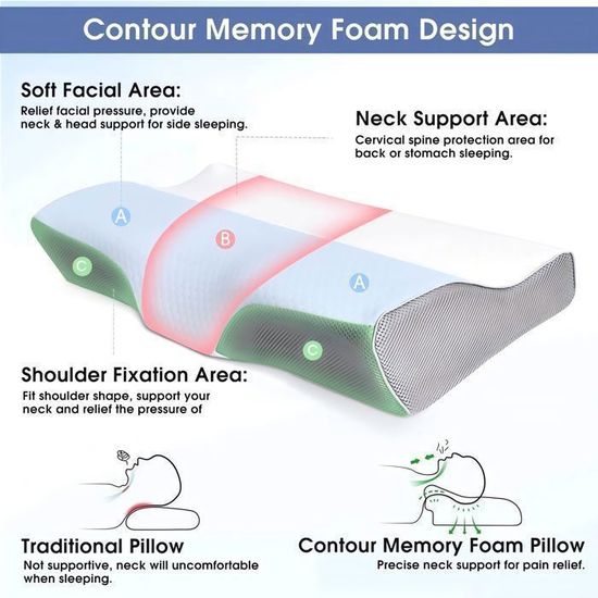 Veuillez noter que le noyau de l'oreiller n'est pas lavable. Testé dans un cadre domestique quotidien, cet oreiller ergonomique offre un soutien remarquable pour la nuque et les cervicales, favorisant un sommeil réparateur 【SOUTIEN SCIENTIFIQUE ET SOULAGEMENT DE LA COLONNE VERTÉBRALE】Cet oreiller ergonomique cervical présente une structure incurvée scientifiquement développée pour un soutien optimal, contribuant à une posture optimale de la tête, du cou, des épaules et du dos. Trouvez l'équilibre parfait entre soutien et confort en fonction de votre sommeil. Les personnes dormant sur le dos et nécessitant un soutien supplémentaire peuvent choisir la hauteur supérieure (12 cm), qui offre une meilleure stabilité et maintient l'équilibre entre la nuque et le corps. Une légère odeur peut se dégager au début, ce qui est tout à fait normal. Cela lui permettra de se déployer pleinement, offrant un soutien et une douceur idéaux pour un sommeil confortable. Un oreiller ergonomique est conçu pour offrir un soutien optimal à la nuque et à la tête, favorisant l’alignement de la colonne vertébrale. Sa mousse à mémoire de forme s’adapte aux contours de votre morphologie, contrairement à un oreiller classique, souvent moins spécifique De plus, notre oreiller en mousse à mémoire de forme présente une conception innovante creuse à 18 degrés qui soutient délicatement votre tête tout en préservant la courbe naturelle de votre cou. GRENNGASSIR Oreiller Ergonoique Cervical à éoire de Fore - Oreiller Oreiller Orthopédique Dos Côté JOVIAL Oreiller Ergonomique Cervical, Oreiller Memoire Forme Oreiller Dos Cote Ventre 【MOUSSE À MÉMOIRE DE FORME PREMIUM】Notre oreiller cervicales douloureuses est fabriqué à partir de mousse à mémoire de forme haute densité à rebond lent, qui conserve sa forme et sa fermeté même après une utilisation prolongée. 【ERGONOMIQUE ET S'ADAPTE AUX COURBES NATURELLES】Notre oreiller memoire forme possède des zones de soutien uniques qui épousent parfaitement les courbes naturelles de votre corps, offrant un confort personnalisé pour un sommeil optimal. Adapté aux personnes dormant sur le dos, sur le côté et sur le ventre, il maintient votre tête et votre cou dans une position naturelle, tandis que votre colonne vertébrale reste droite toute la nuit. La housse double épaisseur assure un confort optimal. Lavez régulièrement la housse pour garder votre oreiller propre et frais.