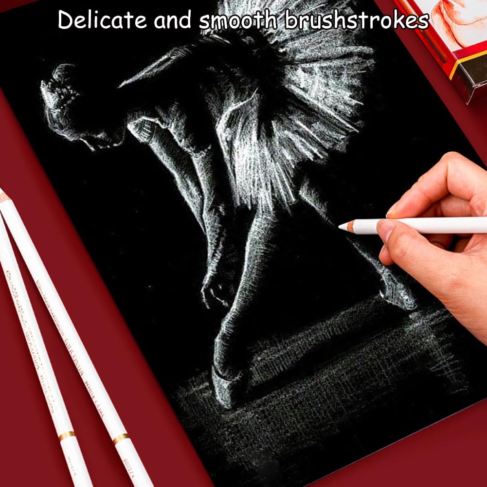 Un indispensable pour : Les étudiants en art; Les illustrateurs; Les architectes-dessinateurs; Les artistes amateurs; Les designers graphiques. Lot de 3 crayons de peinture au fusain blanc pour artistes - Crayon de peinture à l'ombre - Crayon à charbon blanc doux moyen et dur et crayon de couleur pour peintre Lot de 3 crayons de fusain blancs professionnels pour croquis, surligneurs, dessins, fournitures artistiques pour studio créatif, médias mixtes et carnet de croquis, journal : : MaisonÀ propos de cet article Expérience d'écriture lisse de qualité supérieure 4,🌟【Utilisations Multiples pour Tous les Artistes】Parfait pour : Créer des effets lumineux saisissants; Ajouter des textures délicates; Travailler les détails dans les portraits; Améliorer les contrastes dans les dessins architecturaux; Ajouter des effets spéciaux dans les mangas et les bandes dessinées. La formule ultra-fine de la mine en poudre de charbon permet des surlignages couvrants et éclatants sur tous les types de supports, parfaits pour les portraits, natures mortes et paysages. Convient pour les illustrations, la journalisation, les dessins photoréalistes, les croquis, le mélange, l'ombrage, le maculage l'ajout de texture. - Il n'est pas seulement utilisé pour les peintres professionnels ou les enseignants, mais convient également aux étudiants en art aux débutants 5,🎁【Outil Professionnel pour les Artistes Créatifs】Ce set de 3 crayons de haute qualité est idéal pour tous vos projets artistiques. 1,✨【Crayons Blancs de Haute Qualité pour un Éclat Artistique】Le set de 3 crayons HABNI (17,5 cm de long, diamètre de 1 cm) avec des mines de charbon blanc pur offre des reflets lumineux et intenses dans vos dessins. Longueur 17,5 Cm 2 Pcs Crayon Fusain Blanc Travail Crayons De Charbon Bois Pour Le Crayon Blanc Artistique 17.5cm