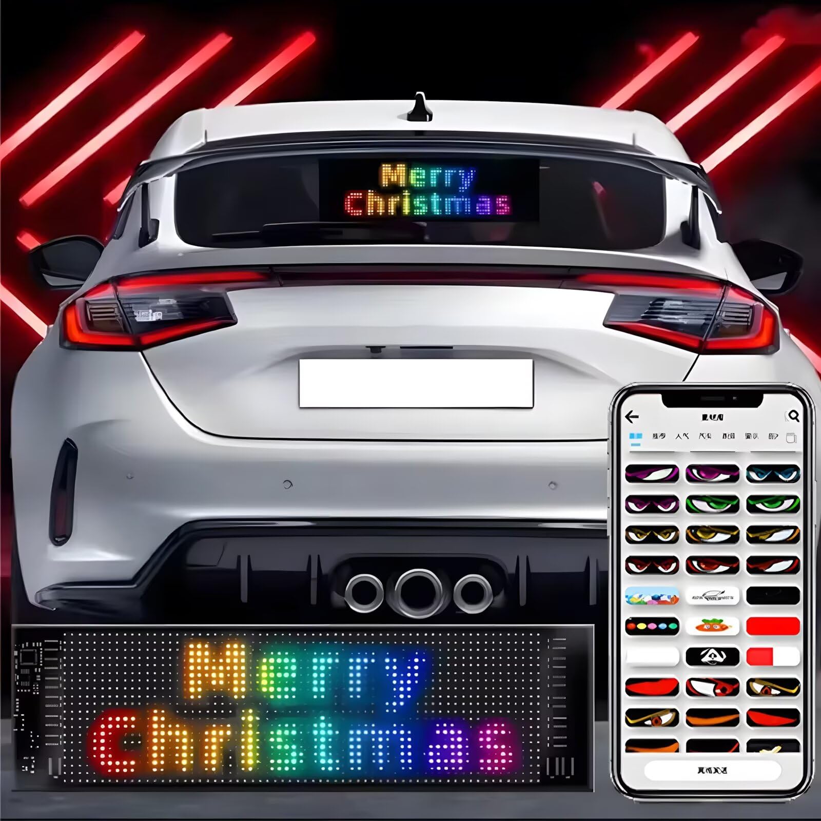 Lot de 2 grands yeux de diable dynamiques pour camions et voitures, grand écran LED dynamiques pour fenêtre de voiture, à monter soi-même, programmables avec télécommande, écran LED flexible de Panneau Affichage Led Homesally 192mmx1330mm,Yeux De Diable Pour Voitures, Grand U00c9cran LED Flexible Programmable, , U00c9cran Doux Avec Contru00f4Le Par Application Pour Voiture, Camion, Vitrine De Magasin Yeux Led Pour Voiture Pour une visibilité optimale, placez-le sur le pare-brise avant ou arrière, ou installez-en même deux pour un effet plus dynamique. Écran LED flexible programmable : cet écran LED ultra-fin (seulement 2 mm d'épaisseur) et léger peut être facilement contrôlé via une application ou une télécommande. Pratique alimentée par USB : yeux de pare-brise LED animés alimentés par n'importe quel port USB, ils fonctionnent parfaitement avec les chargeurs de voiture, les banques d'alimentation et autres appareils USB, offrant une installation et une utilisation sans tracas. Panneau LED programmable DIY : l'écran LED flexible programmable (application télécommande) est très léger et fin, son épaisseur est d'environ 2 mm. L'écran souple coloré avec lampe oculaire pour fenêtre de voiture peut être plié, plié et façonné pour s'adapter à différentes surfaces ***Conseils : veuillez mesurer la taille avant d'acheter pour éviter les retours dus à des commandes incorrectes et des pertes inutiles. Feux LED pour vitre de voiture, feux yeux de démon pour camions et... Si cela vous dérange, achetez avec prudence. Étanche et résistant aux intempéries : yeux de pare-brise LED animés conçus pour résister aux conditions extérieures avec un indice d'étanchéité IP65, garantissant qu'il reste fonctionnel et durable par tous les temps.