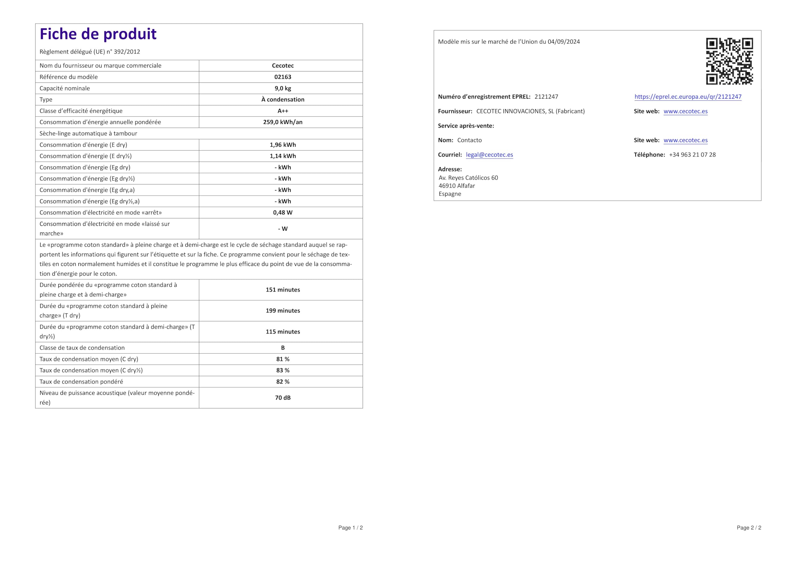 Bolero DressCode Dry 10505 Inverter Secador de bomba de calor Cecotec Avec 14 programmes de séchage, ce sèche-linge offre des options polyvalentes pour tous types de tissus et niveaux d'humidité, garantissant des résultats parfaits à chaque fois. Cecotec Sèche Linge Pompe à Chaleur En Acier De 8 Kg Bolero DressCode Dry 8400 Steel A Sechage Automatique Faible Consommation Denergie Control Full Touch 15 Programmes Tambour En Acier Inoxydable Kidloc 86382196 Sèche-linge à pompe à chaleur en acier d'une capacité de 10 kg, classe C (avant A+++), moteur Inverter Plus, certification Woolmark, 14 programmes, fonctions UV Care et Repassage facile Le Comfort Mode ajuste le lavage et l'essorage à un mode ultra silencieux, permettant son utilisation même la nuit sans interrompre le sommeil, idéal pour les foyers avec des bébés. De plus, la fonction de verrouillage enfant KidLock garantit la sécurité à la maison, évitant les changements accidentels dans les programmes par les plus jeunes. Séchage automatique : séchez complètement votre linge grâce aux capteurs d'humidité qui ajustent le temps de séchage. Repassage facile : programme qui réduit la... Bolero DressCode Dry 10505 Inverter Sèche-linge à pompe à chaleur Équipé d'un moteur Inverter Plus, ce sèche-linge offre un fonctionnement silencieux et durable, un meilleur contrôle de la vitesse et une efficacité énergétique, prolongeant la durée de vie de l'appareil. La fonction UV Care utilise la lumière ultraviolette pour illuminer le tambour et stériliser les vêtements pendant le séchage, assurant que vos vêtements soient exempts de bactéries pour un nettoyage en profondeur et une désinfection complète. Grâce à la technologie de pompe à chaleur, le séchage est efficace et doux, avec une consommation d'énergie réduite, protégeant vos vêtements et réduisant la facture d'électricité.
