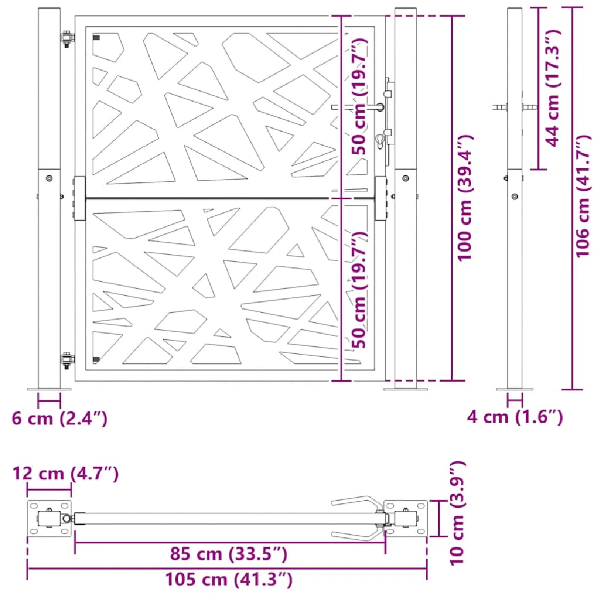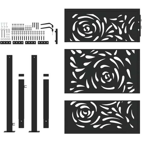 Dimensions du panneau de porte : 85 x 150 cm (l x H) Portail de jardin design flamme acier patiné 105x180 cm | Leroy Merlin Il offre robustesse et stabilité. Taille du tube de poteau : 6 x 4 cm (l x P) Système verrouillable avec 3 clés, Assemblage requis : oui, Couleur : noir Taille de la plaque de bride : : 12 x 10 cm (L x P) Facile à assembler : la porte est livrée avec deux poteaux avec plaques à bride et accessoires de montage pour une installation facile. vidaXL Portail de Jardin Portillon de Porte de Clôture et de Terrasse Acier 100x75 cm Anthracite Dimensions totales : 105 x 10 x 155 cm (l x P x H) Et le revêtement en poudre sur l'acier crée une couche protectrice contre l'usure. Matériau : acier résistant aux intempéries Ce portail de jardin, offrant une combinaison parfaite de résistance et de élégance, constitue un point d'entrée idéal pour la cl?ture autour de votre jardin ou terrasse. Matériau durable : l'acier est un matériau exceptionnellement dur et résistant. Il offre robustesse et stabilité. La galvanisation offre une meilleure protection contre la corrosion et est utile pour les produits qui... Portail 105x155 Cm Verrouillable ZJCHAO Portail De Jardin 100x125 Cm Acier Inoxydable - AKO7053248158548 Portail Montage Facile Poteaux Inclus Nombreuses applications : le portail métallique est parfait pour améliorer les entrées de jardin, les allées et toutes les limites de propriété, combinant fonctionnalité et attrait visuel., Couleur : noir
