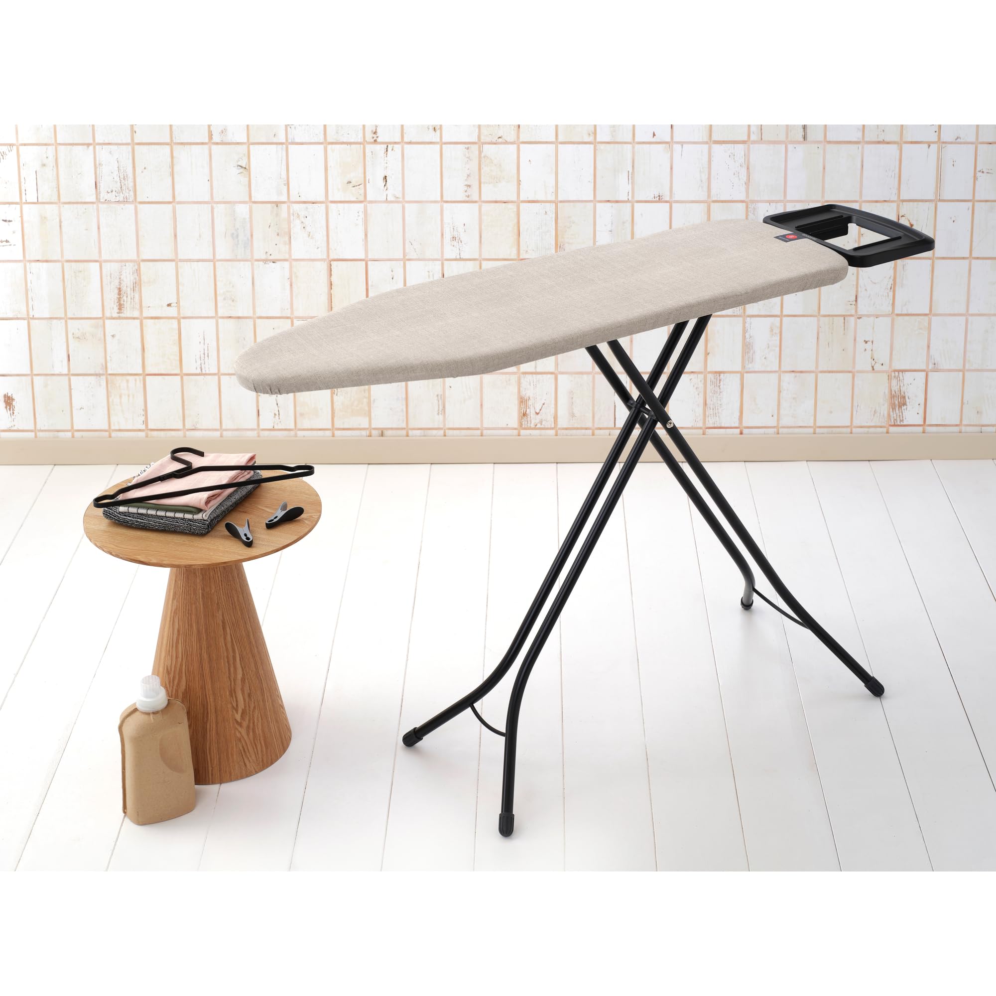 Pour plus de sécurité, cette table est dotée d’un verrou enfant qui évite toute fermeture accidentelle, ainsi que d’un verrou de transport qui maintient la table bien pliée lors du rangement ou du déplacement. C’est le modèle le plus populaire de la marque, plébiscité pour sa stabilité et sa robustesse, qui rendent le repassage plus agréable. Un produit chaudement recommandé pour tous les foyers ! Durable et fiable : un achat responsable, avec une housse 100 % coton certifié Fairtrade et une certification Cradle-to-Cradle (niveau Argent). Flexible pour tous les utilisateurs : Le repose-fer vapeur solide est conçu aussi bien pour les droitiers que pour les gauchers, et peut accueillir des fers vapeur jusqu’à 15 cm. Solide, stable et pensée pour un repassage simplifié - cette table à repasser B fait figure de référence. Elle dispose d'un support de fer à vapeur qui convient aux gauchers comme aux droitiers, d'un support robuste et stable, ainsi que d'une housse écrue en coton 100% équitable Fairtrade. Découvrez toutes les autres caractéristiques qui font de cette table à repasser un... Un design plébiscité : découvrez pourquoi il s'agit du modèle de table à repasser le plus populaire de Brabantia. Une solution fiable pour poser votre fer en toute sécurité pendant le repassage. Facile à installer, elle s’ajuste aisément sur sept hauteurs différentes (de 69 à 96 cm) pour une posture de repassage confortable. Verrou de transport et sécurité enfant intégrés. Table à repasser Brabantia B - avec support pour unité vapeur - 124 x 38 cm Avec son repose-fer vapeur solide et sa housse en coton certifié Fairtrade dans le coloris « Denim Grey », la table à repasser Brabantia taille B (124 x 38 cm) a tout ce qu’il faut pour faciliter le repassage. Son repose-fer vapeur fixe, adapté aux droitiers comme aux gauchers, accueille des fers mesurant jusqu’à 15 cm de large. Réglable facilement à votre hauteur de travail idéale (de 69 à 96 cm), elle vous permet un repassage confortable. Redécouvrez le repassage grâce à son cadre robuste à quatre pieds en acier, associé à des capuchons antidérapants, qui garantit une stabilité parfaite, sans vacillement. Table A Repasser Table à Repasser Pliable Table à Repasser Brabantia B 124x38 Cm - Housse Coton Réglable Pliable Planche Repassage Brabantia Table A Repasser Pliable Conçue pour durer, cette table bénéficie de la garantie Brabantia de 10 ans et de son service fiable. Choisir cette table à repasser, c’est faire un choix équitable et durable : tout le coton est certifié Fairtrade, et la table elle-même est certifiée Cradle-to-Cradle niveau Argent.