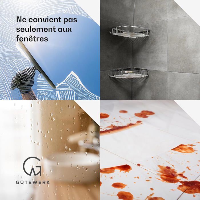 Support inclus - Pas de perçage ou de collage nécessaire. Facile à enlever et à repositionner Support pratique sans perçage avec crochet en S et ventouse Livré avec un crochet en S robuste et un support à ventouse PVC, ce kit permet une installation sans perçage sur diverses surfaces lisses comme le carrelage ou le verre. Raclette De Douche Avec Support Sans Perçage Blanc Raclette En Silicone Pour La Douche Raclette De Fenetre 21 Cm Raclette De Fenetre Pour Portes De Douche Miroirs Fenetres Carrelage Vitres De Voiture Nettoyage Des Vitres La raclette de douche en silicone noir de 28 cm est un accessoire essentiel pour garder votre salle de bain propre et sans traces d’eau. C'est un accessoire indispensable dans tout ensemble salle de bain accessoire. Design compact et esthétique avec finition noire moderne Avec ses dimensions de 29,5 × 22,5 × 2,5 cm et son poids léger de 310 g, cette raclette combine efficacité et esthétique, s'intégrant facilement dans tous les accessoires de douche. Il y a 6 jours · Elle est idéale pour nettoyer le verre, le carrelage ou autres surfaces lisses, sans les rayer. Cette raclette peut être accrochée sur sa patère qui se fixe en toute simplicité et sans perçage grâce à son ruban de fixation XXL Raclette de douche | Avec crochet de suspension | Noir Fabriquée avec des matériaux durables comme le silicone, l’acier inoxydable 201 et le PVC, elle assure une utilisation stable et fiable dans les environnements humides. Accessoire multifonction pour salle de bain et surfaces vitrées Convient pour nettoyer les parois de douche, les vitres, les miroirs ou les plans de travail. Idéale pour les surfaces vitrées, les cabines de douche, les miroirs et même les plans de travail.