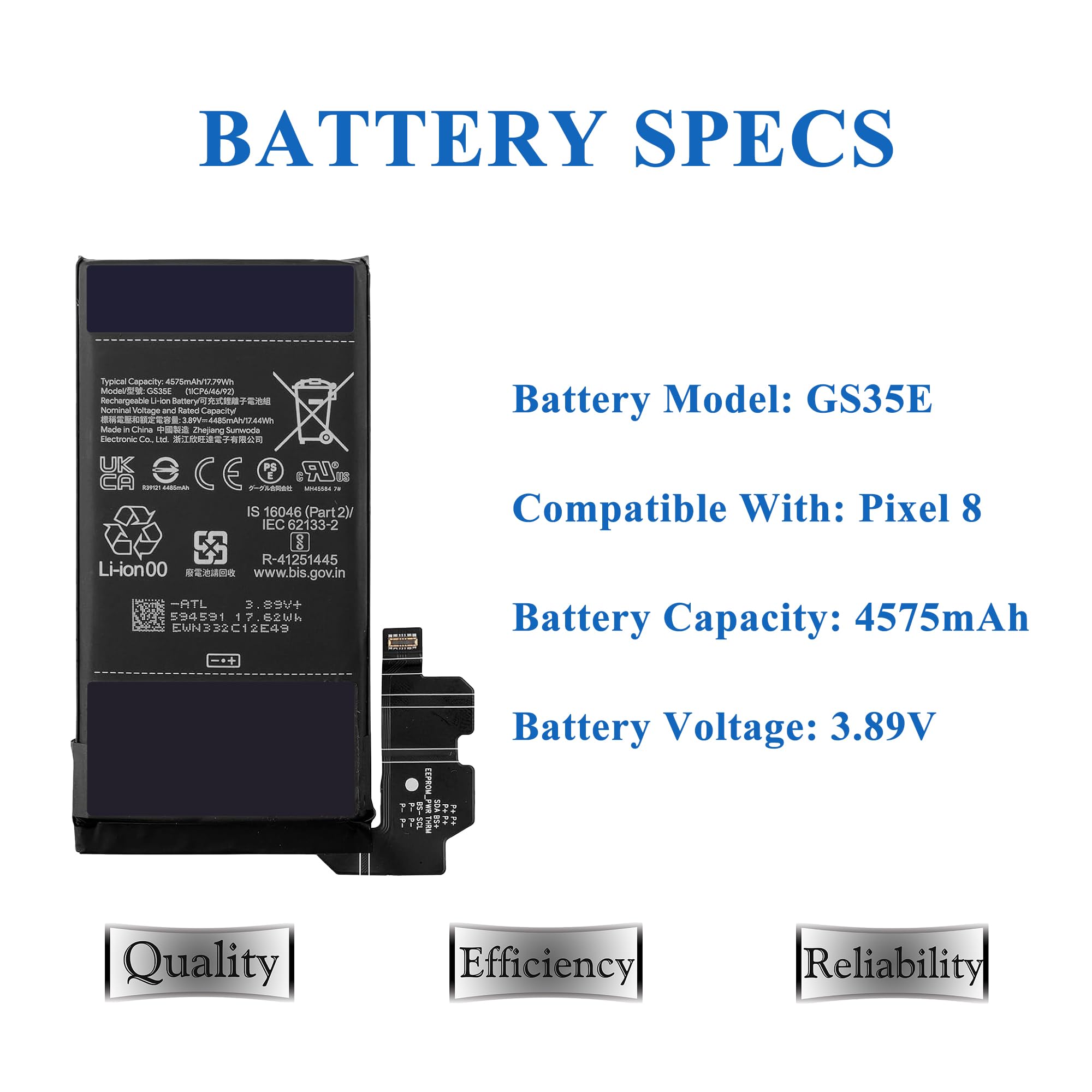 Remplacement Batterie Pixel 8 Vvuilsty GS35E Batterie De Rechange Pour Pixel 8 GKWS6 G9BQD Batterie Avec Protection IC Nous vous recommandons de mettre à jour votre système de téléphone portable. Modèle compatible : uniquement compatible avec la batterie Google Pixel 8 GKWS6 G9BQD, le numéro de modèle de batterie est GS35E, veuillez vérifier que votre modèle de téléphone portable correspond avant d'acheter la batterie. Question : redémarrage automatique répété après l'installation, la batterie ne peut pas être allumée ou chargée. Protection multiple : la technologie de puce IC intelligente améliorée intégrée empêche la surcharge, la surchauffe, les courts-circuits, etc. Merci de votre compréhension. pour assurer la sécurité. N'oubliez pas que la batterie n'atteint son utilisation optimale qu'après 3 à 5 cycles complets de charge/décharge. Emballage : 1 x batterie, 1 x outil Compatible avec Google Pixel 8 GKWS6 G9BQD. Batterie d'origine pour Google Pixel 8 Remarques importantes : Veuillez décharger la batterie lors des trois premières charges avant de la charger complètement afin qu'elle puisse être utilisée de manière optimale. Batterie de remplacement pour Google Pixel 8. Utilisez-la si la batterie de votre appareil doit être remplacée, qu'elle ne se charge plus à 100 %, qu'elle est endommagée ou qu'elle est devenue obsolète. Pièce de rechange Réponse : mauvais contact d'installation ou vis de fixation non installées pour le verrouillage de la pièce de pression ou les problèmes de système de téléphone mobile ou de batterie. Réponse : pour certains utilisateurs, la version du système de téléphone portable est inférieure et la puce de charge de la batterie ne convient pas. Durable et durable : les nouvelles cellules de batterie à 0 cycle avec une capacité améliorée, les batteries sont testées selon des normes de contrôle de qualité strictes avant de quitter l'usine, stockent plus d'énergie, offrent plus de temps de veille, prolongent la durée de vie de la batterie et réduisent le nombre de recharges. La capacité réelle d'une batterie nouvellement installée ne peut être atteinte qu'après 2 à 3 cycles complets de charge/décharge. Question : la capacité de la batterie ne correspond pas à la capacité réelle ? Question : problème de batterie gonflée après l'installation. Nouvelle batterie de remplacement d'origine GS35E adaptée pour Pixel 8 4575mAh 3.89V ; Caractéristiques du produit. Pour Google. Marque compatible. RECHARGEABLE Veuillez essayer d'éviter que le téléphone ne soit mouillé. Réponse : mauvais contact de montage ou vis de fixation non installées pour le verrouillage de la plaque de pression ou le système de téléphone portable, problème de batterie.