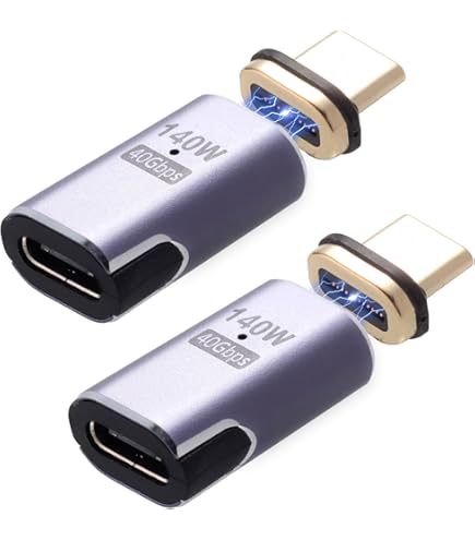 L'adaptateur magnétique USB-C prend en charge 240W PD, les données 40Gbps et la vidéo 8K 60Hz. Compatible avec Thunderbolt 3/4. Dispose d'un aimant N52 puissant pour une connexion sécurisée. Idéal pour les appareils compatibles avec Huawei, Samsung, APPLE, Garmin Que vous regardiez des vidéos, jouiez à des jeux ou fassiez des présentations, profitez d'une qualité d'image et de son exceptionnelle à la maison, à l'école ou au bureau. Cable Usb C Aimanté IVIVTOR Adaptateur Magnétique USB-C - 2 Pack Aimanté Connecteur USB C 240W Avec Vitesse De Transfert De 80 Gbit/s Pour Ordinateur Portable Tablet Et Téléphone - De L'étain Usb C Magnétique (Remarque : veuillez utiliser un adaptateur de charge compatible avec le protocole de charge rapide., ) Un choix judicieux : L'adaptateur magnétique USB Type-C d'ivivtor est fabriqué en alliage d'aluminium durable. Cet adaptateur magnétique USB-C 240 W allie une charge haute performance à la commodité d'une fixation magnétique et est compatible avec la plupart des appareils USB-C. Adaptateur magnétique USB C DuHeSin Adaptateur Magnétique USB C 240W, (2 pièces), à angle droit, 24 broches, avec USB4, 40 Gbit/s, 8K, 60 Hz, pour Thunderbolt 3/4, MacBook (Remarque : la vitesse de transfert de 80 Gbit/s dépend des périphériques et câbles USB utilisés., ) Adaptateur magnétique USB-C 24 broches : Cet adaptateur magnétique USB-C 24 broches présente une conception magnétique innovante qui minimise l'usure du port de votre ordinateur portable due aux branchements et débranchements fréquents. Transfert de données rapide de 80 Gbit/s : Cet adaptateur magnétique USB-C prend en charge les ports USB 4 et Thunderbolt 3/4 avec des vitesses de transfert allant jusqu'à 80 Gbit/s pour des transferts de fichiers rapides et efficaces, tels que des vidéos, des images et des fichiers.