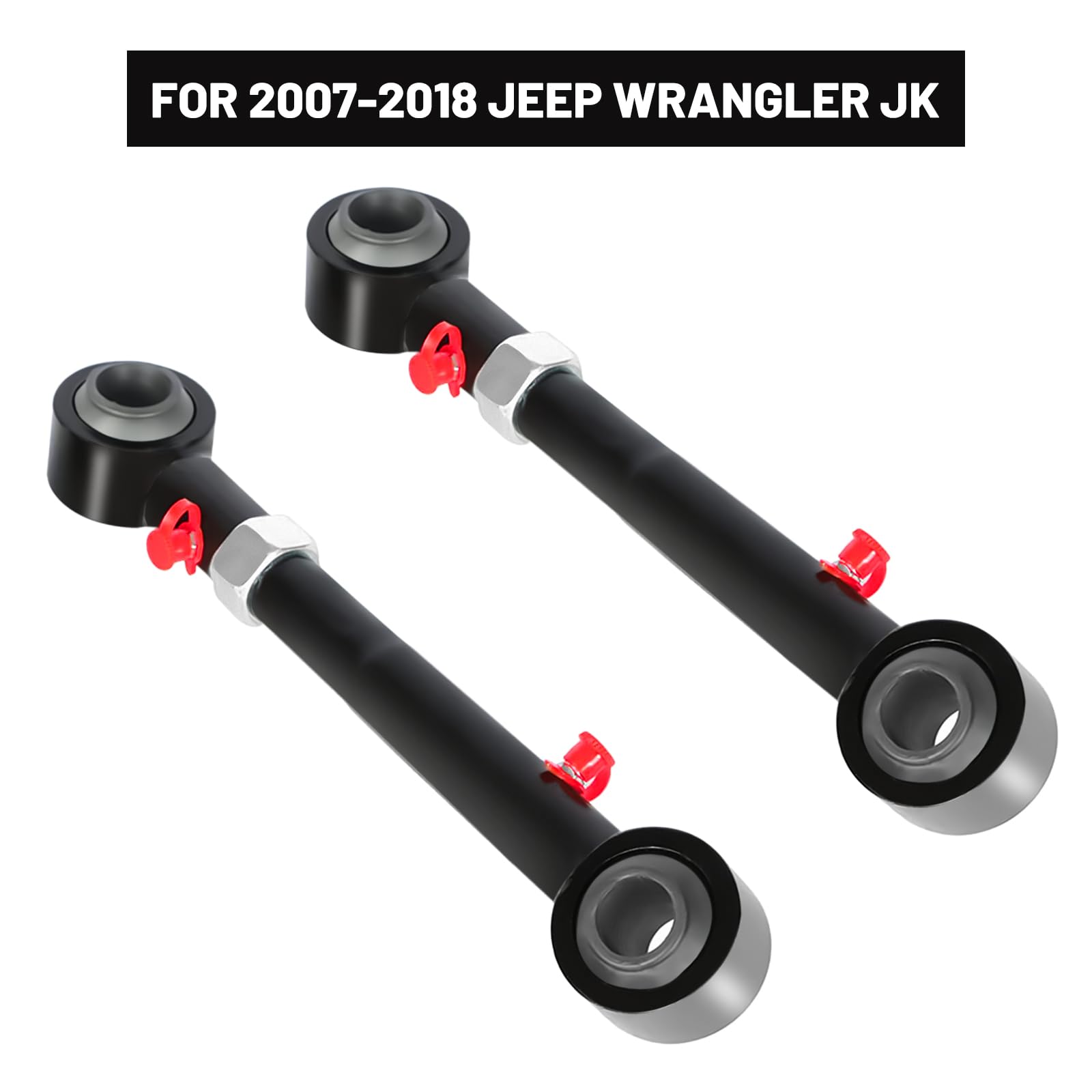 Suitable only for vehicles equipped with 2., 5in to 6in lifts. Item Type: Front Swaybar Quicker Disconnect SystemFunction:Front axle articulation increased by 30%Significantly improved off-road performanceAdjustable thread body to fit your vehicleConvenient butter nozzle for easy lubricationSet your Swaybar operating Angle preciselySuitable only for vehicles equipped with 2., 5in -6., 0in liftsFitment:Fit for Wrangler TJ JKS 1997-2006Package List:1 x Front Swaybar Quicker Disconnect System(26pcs in total) Enhancing Vehicle Stability: Swaybar stabilizes vehicle body, connects to chassis and axle using swaybar end links, resists body roll during cornering like its spring steel torsion bar. CE-9141 - TJ/LJ/XJ/MJ/ZJ Front Sway Bar Disconnects Rugged and Simple Installation: The quick disconnect system is mostly made of stainless steel, with high strength, easy to install, and does not require professional skills. Adjustable: The sway bar link is adjustable fit from 2.5in to 6in lift, and the body lift does not affect the suspension assembly. Suitable only for vehicles equipped with 2.5in to 6in lifts Swaybar Disconnect Off Road How To Install A JKS Front Swaybar Quicker Disconnect System On Your Jks Front Sway Bar Disconnect DetailsJKS Quicker Disconnect sway bar end links fit lifted TJ, LJ, XJ, MJ and ZJ vehicles and provide up to 30 percent better articulation on uneven terrain! The ability to disconnect your factory sway bar allows increased articulation, thus keeping all four tires on the ground for maximum traction. To disconnect simply pull the lynch pin and swing each disconnect up and out of the way. The...