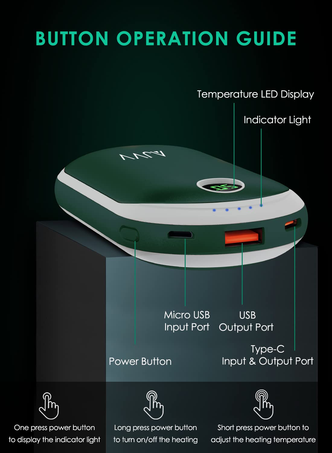 Dreamhigh® 14000mAhChaufferette Main Rechargeable, 2-en-1