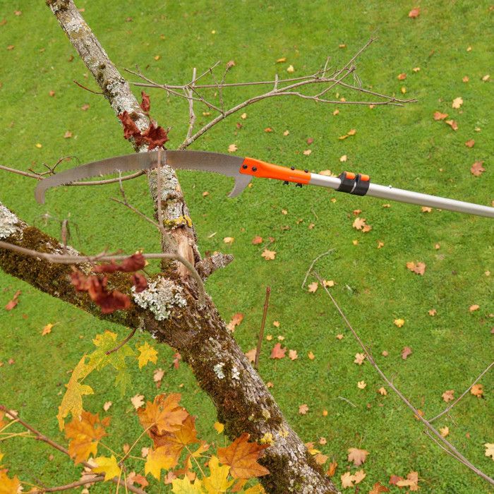 【Facile à installer】 La connexion filetée entre chaque tige est facile à installer. 【Tige de scie d’élagage de 8 mètres】 - Coupez rapidement et facilement de hautes branches avec un système de coupe d’arbres robuste qui peut s’étendre jusqu’à 8 mètres. La scie à arbre extensible de VEVOR peut atteindre une hauteur de 8,24 m. Elle est dotée d'une lame tranchante pour des coupes efficaces, d'un raccord solide et de 8 perches détachables pour accomplir les tâches difficiles d'accès Elle est dotée d'une lame tranchante pour des coupes efficaces, d'un raccord solide et de 8 perches détachables pour accomplir les tâches difficiles d'accès La longueur d’un seul poteau est de 1 m, vous pouvez assembler la longueur nécessaire en fonction de l’arbre. KAMIKAZE Scie télescopique 330-H de 3 m pour élaguer en hauteur. Design Un sac de rangement en toile supplémentaire vous permet de ranger le sécateur manuel. Il y a un couvercle de lame de scie et des gants pour protéger votre main. VEVOR Scie A Elaguer Telescopique 2,24-8,24 M Scie A Perche Extensible Lame En Acier Tranchant Scie Deelagage Avec 8 Poteaux Fibre De Verre Ciseaux Coupe Branches Hautes Pour Elagage Palmiers Arbustes 81460751 Vous pouvez également tenir la scie à arbre pour la coupe quotidienne du sol. 【Poignée robuste】 Fabriquée en résine époxy, la tige extensible de la scie à arbre est résistante, légère et durable, et ne se casse pas facilement. 【Sécateur 2 en 1 Télescopique】 La lame de scie et le sécateur sont en acier au carbone SK5 pour assurer une longue durée de vie.