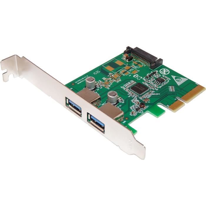 Permet de rajouter 2 ports SATA internes ou externes pour brancher de 1 à 2 périphériques SATA III de manière indépendante. VERSION LOW PROFILE. Compatibilité Contenu: 1 Carte PCI Express SATA 3 + Drivers disponibles sur simple demande Débit 6 Gbit/s Carte Contrôleur PCI Express à 4 Ports USB 3.0 - STARTECH - PEXUSB3S42V Carte Extension 2 Ports SATA III Interne Externe Ce réglage est facilement paramétrable par l’utilisation des cavaliers directement sur la carte PCI Express. Supporte la fonction Plug&Play et branchement à chaud. Conforme aux normes Serial ATA Revision 3., 0 specification et avec Single-Lane (x1) PCI Express specification revision 1., 0. Caractéristiqus : Port PCI XPRSS 1x (PCI 1.0). Compatibl avc l SATA 3 (révision 3.2), accpt ls disqus SATA 1 t 2, mais l débit maximal sra alors rspctivmnt d 150Mo/s t 300Mo/s Controladora 4 Puertos Sata Iii Tarjeta Controladora 4 Puertos SATA 3 PCIe - Chipset ASM1061 Para Añadir Discos Duros Tarjeta PCIe 4 Puertos SATA 3 Controladora ASM1061 Windows Serveur 2003 et Windows Server 2008., Ce produit est conforme aux normes Serial ATA Revision 3., 0 specification et avec Single-Lane (x1) PCI Express specification revision 1., 0., Chipset: ASM1061 ASMEDIA. Carte d'extension PCI Express 1X permettant de rajouter 2 ports SATA III, soit eSATA III (externes) ou SATA III (internes) par la configuration des jumpers/cavaliers directement sur la carte. Cela permettra à votre ordinateur d’avoir un débit théorique de 6Gbit/s soit environ 600Mo/s.