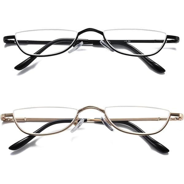 Lot de 3 paires de lunettes de lecture en demi-monture pour homme et femme - Verres fins en demi-lune - En métal - Semi monture 4.0, Noir/blanc 3,8 sur 5 étoiles3 Couleur : noir, gris, degrés : +1,0, +1,50, +2,0, +2,50, +3,0, +3,50 Lunettes Pendentif Lecture MMOWW Lunettes De Lecture Semi-montantes En Métal - Demi-monture En Métal - Lentille Demi-lune Verres Demi-lune Grossissants +1.0 à +3.5 APERÇU DU PRODUIT Matériau : métal durable (cuivre blanc) Verres : polycarbonate transparent. Monture en alliage métallique de qualité supérieure, lentille entièrement grossissante, cadre en métal léger et flexible. Pas besoin de retirer les lunettes. Lunettes De Lecture Homme Femmes Lunettes De Lecture Pliantes Avec... KoKoBin Lot de 2 paires de lunettes de lecture demi-monture en Lecteurs métalliques durables avec charnière à ressort Matériaux avancés, verres transparents. Lecteurs inspirés en forme de demi-lune