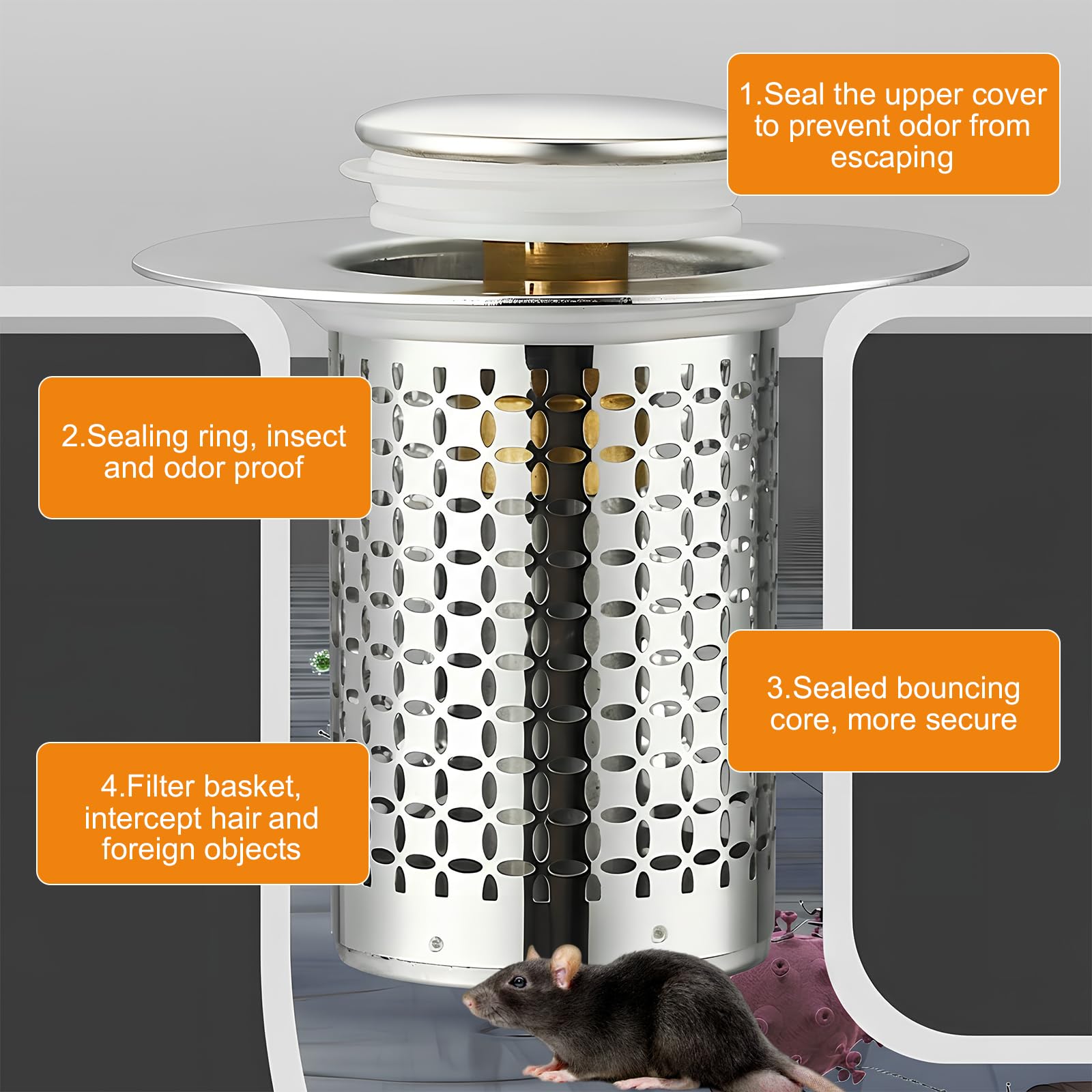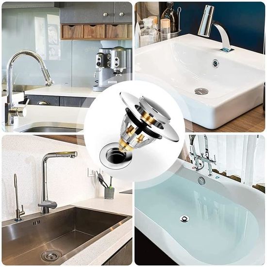 Attrape Cheveux Douche Bonde De Lavabo Pop-Up - Universel Flitre De Vidange Anti-Bloqué, Bouchon Lavabo, Bonde Et Clapet Baignoire[Acier Inoxydable+Cuivre Pur, Pour 34-38mm Trou Vidange]Bouchon Baignoire Pour Lavabo Cuisine Bouchon évier Le diamètre intérieur de la crépine d'évier est de 30 mm. Veuillez mesurer la taille de l'orifice de vidange avant l'achat afin de vous assurer que le filtre est parfaitement adapté à votre évier. Le diamètre intérieur de la crépine d'évier est de 30 mm. Convient aux orifices de vidange de 34 à 40 mm de diamètre. 2 Pièces Bouchon Baignoire, 34-40mm Bonde Lavabo Universel... 2 Pièces Bonde de Lavabo Universel avec Filtre Amovible 34-40mm Pop Up Bouchon Lavabo pour Lavabo Baignoire Cuisine Bain. Prix de comparaison. 17,99 €. 11,99 ●Matériaux de qualité supérieure : La crépine d’évier est fabriquée en acier inoxydable 304 et en laiton de haute qualité, ce qui la rend durable, résistante à la corrosion et à la rouille, garantissant une utilisation longue durée sans colmatage. Convient aux orifices de vidange de 34 à 40 mm de diamètre. Bonde De Lavabo 2 Pièces, 32-42mm Bouchon Lavabo Universel Pop Up Avec 2 Joints Pour Baignoire Accelere Le Drainage Sans Colmatage Bouchon Baignoire Pour Lavabo Cuisine 86556769 Ils sont parfaits pour un usage domestique et commercial comme les hôtels, les bureaux et les restaurants. ●Product Description: Ce filtre d'évier est très polyvalent : il évacue l'eau rapidement, est facile à installer et à nettoyer, et conserve l'eau sans fuite. Compatible avec une variété de bassins, il assure une bonne étanchéité lors du stockage de l'eau., ●Note: 1., Les mesures étant prises manuellement, veuillez vous référer à l'objet réel., 2., Tenir à l'écart des températures élevées et des flammes nues lors de l'utilisation., 3., Pour toute question concernant le produit, veuillez contacter le service client. Il absorbe efficacement les cheveux, les débris et les impuretés, assurant un drainage plus fluide. Retirez simplement l’ancien filtre et insérez le nouveau. ● Applications multiples : Nos filtres conviennent à une grande variété d'endroits, notamment les salles de bains, les balcons et les cuisines. ●Filtration efficace : Notre crépine d’évier filtre efficacement les débris tels que les cheveux et les particules alimentaires, les empêchant de pénétrer dans le drain, réduisant ainsi le risque de colmatage et créant un environnement propre et hygiénique. Le ressort intégré est durable et intercepte les corps étrangers, prévient le colmatage et réduit les odeurs.