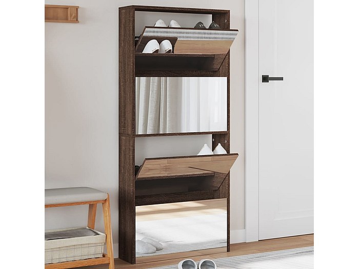 Couleur : Chêne Matériau : aggloméré + miroir Dimensions : 63 x 17 x 134 cm (l x P x H) 4 tiroirs inclinés Espace de rangement pour environ 12-16 paires de chaussures au total (dépend de la taille des chaussures) Assemblage facile La livraison comprend 2 meubles à chaussures à 2 étagères Color: Brun, Très résistant Le meuble est fixé directement au mur. Ce meuble d'entrée robuste et durable est fait en matériau de haute qualité, ce qui en fait un endroit très pratique et élégant pour ranger soigneusement vos chaussures et éviter qu'elles vous encombrent. Meuble Entrée 4 Tiroirs Meuble à Chaussures 5 étagères Et Miroir 63x17x169,5 Cm Blanc VidaXL | Leroy Merlin Meuble Entrée Avec Miroir Rangement EN STOCK : Vidaxl meuble à chaussures 4 étagères avec miroir 63x17x134 cm chêne 273935 pas cher - Retrait & Livraison - Paiement 4X disponible. Rangement à prix discount Description du produit Ce meuble à chaussures moderne et élégant avec miroir offre une solution idéale pour éviter d'encombrer votre pièce avec des chaussures. Ce meuble à chaussures avec miroirs possède quatre tiroirs inclinés qui peuvent accueillir jusqu'à 3 ou 4 paires de chaussures chacun. Le meuble est fixé directement au mur Vidaxl Szafka Na Buty Z 5 Półkami Lustrem W Kolorze Dąb 63X17X169 5 - Opinie i a
