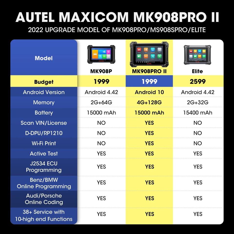 Lecture et effacement des codes sur tous les modules disponibles Réinitialisation du BMS : enregistre la batterie après son remplacement. 🚗【36 services pour plus de 150 marques】Similaire aux scanners OE comme snap-on, le scanner Autel a une forte capacité de service et peut aller profondément dans chaque partie pour effectuer des fonctions de correspondance et de réinitialisation. L'outil de diagnostic automobile Autel MaxiCOM MK908P II dispose de la fonction IMMO Keys (programmation de porte-clés). Couverture de plus de 10000 véhicules Amérique : Compatible avec : Buick ; Cadillac ; Chev., olet ; Ch., ysler ; Dod., ge ; For., d ; G., M ; Hum., er ; J., ep ; Lin. Service de connexion au compte en ligne : Compatible avec Vo., lk., wagen, Au., d., i, Sko., da, Sea., t, etc. Système d'exploitation Android 10., 0 : permet un diagnostic régulier et fluide des tâches. - Contrairement aux scanners conventionnels, les utilisateurs du MK908P II peuvent accéder au sous-système et aux composants spécifiques du véhicule, et envoyer des commandes à l'ECU correspondante, ce qui permet aux actionneurs d'exécuter une fonction spécifique pour déterminer l'intégrité du système ou des composants en lisant les données de l'ECU du moteur, ou en contrôlant le fonctionnement des actionneurs, comme la commutation d'un solénoïde, d'un relais ou d'un commutateur entre deux états de fonctionnement. 📢📢📢👉 [Comment changer la langue] Le produit prend en charge 21 langues. ✔️ Logiciel : MK908P II est livré avec la programmation en ligne de l'ECU + le codage de l'ECU + l'adaptation + le contrôle bidirectionnel (test actif) + 36 fonctions de service + le remplacement du module + la personnalisation + les fonctions guidées + l'installation du module programmable + l'équilibre de la puissance + l'adaptation des composants + le paramétrage en ligne + le service d'enregistrement du compte en ligne. Le scanner automobile Autel MaxiCOM MK908P II vous permet de réaliser des diagnostics de qualité Processeur octa-core Qualcomm 660 : procédure de diagnostic 4 fois plus rapide. ) pour identifier rapidement le véhicule et gagner du temps pour les diagnostics. ✔️ Autel Maxicom MK908P II plus l'outil TPMS TS601/MV105, c'est une combinaison parfaite avec un investissement favorable, qui peut vous aider à résoudre les problèmes les plus difficiles. Avec la possibilité de coder en ligne et d'activer des fonctions cachées pour Benz, BMW, A-udi, Porsche, VW, Nissan, Infiniti, Hyundai, et d'autres grandes marques, le scanner OBD2 MK908P II est certainement un scanner haut de gamme qui gagnera plus de commandes. L'outil de scan dispose également de fonctions étendues : connectez MV108 à des fins d'endoscope et connectez BT506 à des fins de test de batterie. Mémoire de 4+128 Go : gère les tâches multiples et enregistre les rapports sans aucune lenteur de chargement. Correspondance antivol : Désactive, supprime ou fait correspondre les clés. Fonctions cachées Flash : Compatible avec B., M., W, Be., n., z, Pors., che, Volk., sw., agen, Au., d., i, Toy., o., ta, Subaru, Nis., s., an, Peu., ge., ot, Citro., ë., n, etc. Autel MaxiCOM MK908P II, en tant qu'outil de scan professionnel et version améliorée d'Autel MK908/MS908SP/MK908P, peut accéder sans fil via une connexion VCI à TOUS les modules disponibles du véhicule, y compris, mais sans s'y limiter, le PCM, l'ECM, l'EPS, le PDM, le BCM, le TPM, le SCCM, le RADIO, etc. Si vous n'êtes pas satisfait de notre produit, notre équipe de service sera là à tout moment. L'anglais est la langue par défaut, veuillez nous envoyer le numéro S/N (12 chiffres au dos du produit) pour le changer. Codage des injecteurs : Inscrire le nouveau code d'injecteur dans l'ECU du moteur pour obtenir la quantité d'injection correcte dans le cylindre. Surveillez le fonctionnement des actionneurs pour des diagnostics précis, comme la commutation d'un solénoïde, d'un relais ou d'un commutateur, entre deux états de fonctionnement. Avec une capacité complète pour les codes, il peut lire et effacer les codes sur tous les systèmes et sous-systèmes et être en mesure d'afficher les données PID en direct de plusieurs capteurs sous forme de graphique ou de texte. Réponse en ligne 7/24: L'équipe après-vente 7/24 fournit une réponse en ligne et des instructions techniques. Un seul appareil peut répondre totalement aux besoins de diagnostic d'un atelier de réparation. Plus de 13 langues: Contrairement aux outils de scan qui ne prennent en charge que l'anglais, Autel MaxiCOM MK908P II couvre plus de 13 langues pour une meilleure compréhension des termes : Anglais, allemand, espagnol, français, chinois traditionnel, japonais, polonais, portugais, russe, italien, coréen, néerlandais et suédois. Service IMMO Le service IMMO vous permet de programmer le porte-clés remplacé lorsque le porte-clés d'origine a été perdu ou n'est plus fonctionnel. 3) Couverture de modèles plus large : Plus de 150 marques, FCA AutoAuth, aucune restriction IP. Équilibre de puissance : Compatible avec Chr., ys., ler, G., M, Fo., r., d, etc. 🚗【Un test actif donne une connaissance approfondie des voitures】Contrairement aux scanners mécaniques conventionnels, l'outil de scan automobile escaner automotriz professional MK908P II permet aux utilisateurs d'accéder au sous-système du véhicule et de transmettre des commandes au calculateur correspondant, ce qui permet d'amener les actionneurs à exécuter une fonction spécifique et de déterminer l'intégrité du système ou des pièces. Écran tactile de 10,1 pouces avec une résolution de 1920*1200 : vous offre une expérience de lecture extrêmement claire, intuitive et fluide. Purge de l'ABS : Aide à évacuer l'air du système de freinage antiblocage (ABS). Les fonctions de service et les fonctions chaudes les plus couramment utilisées, mises à jour en permanence pour plus d'informations