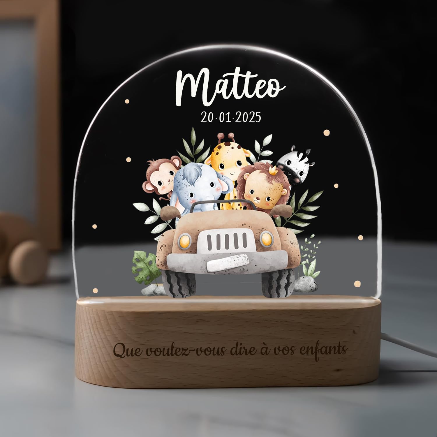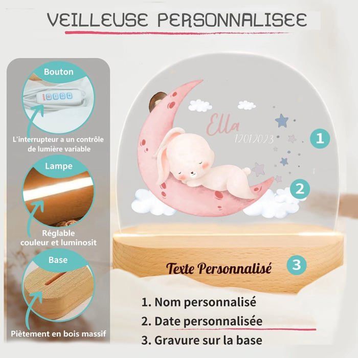Deco Chambre Enfant TIT Veilleuse Bébé Personnalisé,Cadeau Bapteme Garcon-Fille,Cadeau Pour Lampe Bébé Nom Date Naissance Nous Le RéAliserons Pour Vous En Fonction De Vos Informations PersonnaliséEs. Cadeau d'anniversaire et de Pâques pour nouveau-né, avec nom et initiales, en coton 100% coton. Accueillir un nouveau-né, c'est assister au plus pur des miracles. On cherche alors le cadeau qui saura murmurer bienvenue avec une infinie tendresse Un cadeau magique à offrir pour la chambre d'un enfant, ce magnifique coussin veilleuse lumineux en forme de nuage personnalisé au prénom de l'enfant. Découvrez vite cette jolie veilleuse bébé à personnaliser avec la couleur de votre choix. Un cadeau naissance ou de baptême original et personnalisé Peut êTre Utilisé Comme Deco Chambre Bebe , Decoration Chambre Adulte Et Plus Encore. Si Vous Avez Des Questions Sur Le Produit, N'HéSitez Pas à Nous Contacter, Nous Vous RéPondrons Dans Les 24 Heures Et Vous Fournirons Une Solution Satisfaisante. Générique Cadeau Personnalisé Bebe Veilleuse Bebe Avec Nom Et Date L'Article Lui-MêMe Est Petit Et DéLicat, Facile à Ranger Et à Utiliser. 💕CADEAU BEBE CADEAUX POUR ENFANTS VEILLEUSE BEBE - Cette Veilleuse BéBé Est Un Cadeau BéBé TrèS CréAtif. Vous Pouvez Choisir L'Animal PréFéRé De Votre Enfant. Peut Aider Les BéBéS à S'Endormir Rapidement. 💝VEILLEUSE DOUCE VEILLEUSE LED - La Veilleuse Pour BéBé Utilise Des Perles De Lampe Led De Haute Qualité, Le Rendement Lumineux Est Plus Stable Et Ne Fait Pas Mal Aux Yeux. Les Motifs Sont ImpriméS Avec Une Technologie D'Impression Uv Professionnelle, Ce Qui Rend Les Images Claires, Incolores Et RéSistantes à La DéColoration. 💘SÛR ET DURABLE - Adopté Acrylique + Base De Lampe En Bois Massif + Impression Hd Uv ,Le Panneau Acrylique De 5 Mm Est Lisse Et Non Tranchant, Durable Et Robuste. Il Y A 15 Animaux De Dessin Animé Au Total, Dont Des éLéPhants, Des Lapins, Des Lions Et Des Ours.