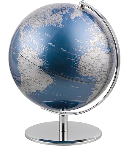 Le globe est étiqueté en anglais et affiche les continents, les pays, les océans, les zones géographiques, les principales villes et les montagnes. Parmi ses autres caractéristiques, on trouve un cadre en métal chromé de haute qualité et un câble noir avec une prise Euro et un interrupteur Pratique et personnel Porte-clés Porte-clés comme aide pratique au quotidien et accessoire de style. Tout le monde connaît la question du bon cadeau, mais il n'est jamais facile de trouver celui qui lui convient. Smart Travel Fidèle à notre devise « organisé en déplacement », nous proposons des accessoires de voyage plus grands et plus petits. Collection globe design de Troïka. La collection Globe terrestre offre une sélection fascinante d'objets design qui ajouteront une touche unique et élégante à votre maison ou votre bureau. Globe lumineux de 25 cm qui offre une vue politique du monde. Très stable, il est un formidable outil pédagogique pour apprendre la géographie, ainsi qu'un bel objet de décoration Collection de globes Offre un foyer au monde! ANCIEN GLOBE TERRESTRE ( grand ), diamètre : 40 cms, vintage ( années Globe Terrestre Lumineux Globe Terrestre De 25 Cm De Diamètre - TERRA LIGHT - Eclairage Intégré - Base En Métal Chromé - Axe Mobile - Bleu Foncé Doré - TROIKA Original Globe Terrestre Lumineux 30 Cm Français Valeur ajoutée : avec ses détails réalistes et sa finition de haute qualité, le globe est non seulement un élément décoratif, mais aussi un outil pédagogique pour les esprits curieux de tous âges., ., Dimensions totales : 250 x 250 x 320 mm, 1008 g - emballé dans un emballage cadeau de haute qualité. TROIKA Globe terrestre original de 25 cm de diamètre. Globe lumineux d'une hauteur totale de 32 cm, rotatif sur un pied en métal chromé robuste. Autres caractéristiques : câble noir avec prise européenne et interrupteur. Les terres sont brun vert et les mers bleu foncé.