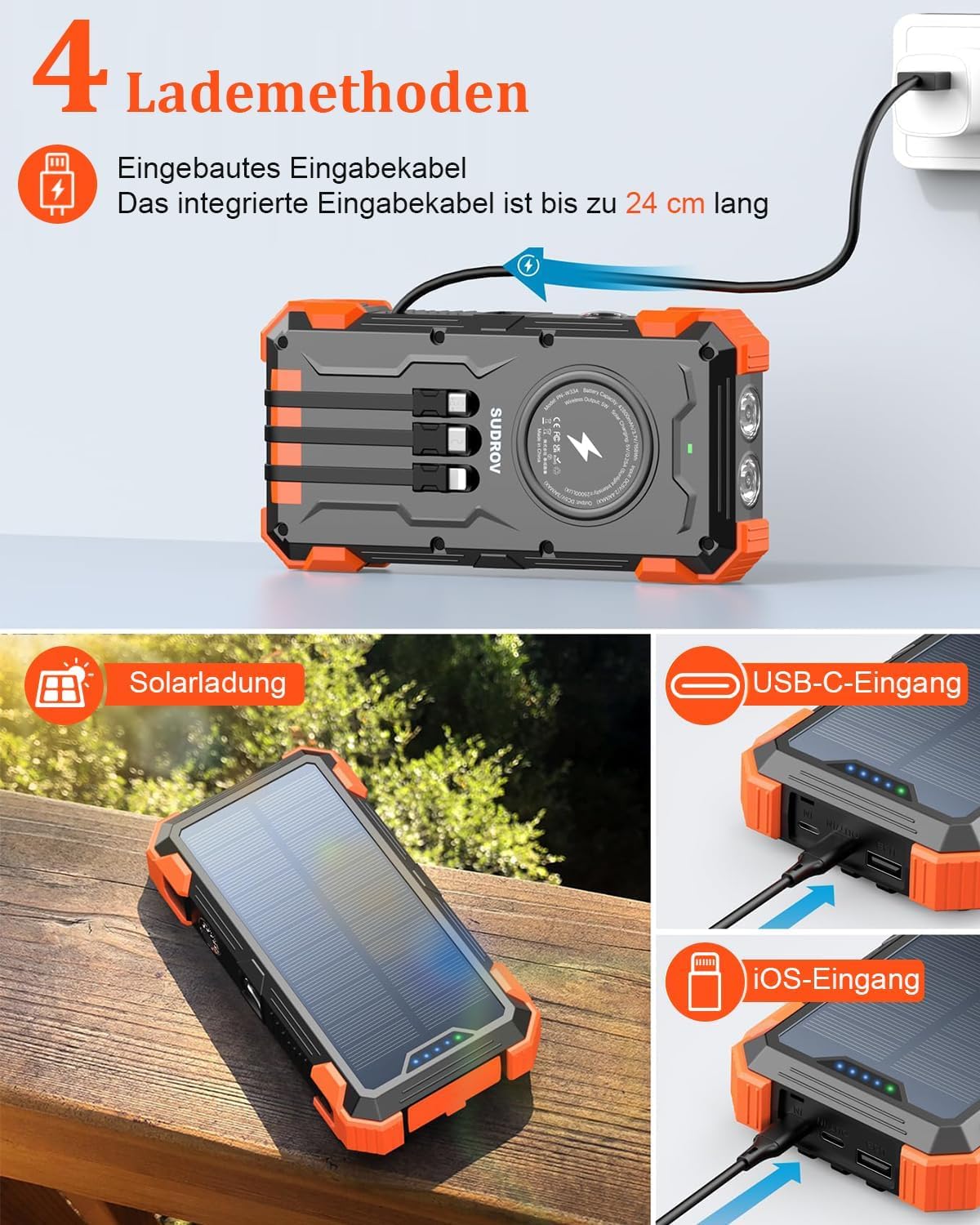 Urgence : Deux lampes de poche LED ultra-lumineuses avec modes SOS, éclairage continu et stroboscopique. Capable de charger jusqu'à six appareils simultanément, il est le compagnon idéal pour les voyages, le camping et le quotidien. Charge USB rapide et charge sans fil : Les sorties USB-C et USB-A 3.0 prennent en charge la charge rapide 1 3 modes d'éclairage 2 Conception robuste 3 Voyant rouge 4 Facile à transporter Le faisceau rouge est visible jusqu'à 300 m. Idéal pour les longs séjours en camping ou en cas d'urgence, lorsqu'aucune prise de courant n'est à portée de main. Toujours une étincelle d'énergie en cas d'urgence : Notre panneau solaire de haute qualité recharge lentement mais sûrement votre batterie externe, même en pleine nature, à condition d'être exposé à la lumière directe du soleil. Capable de charger jusqu'à six appareils simultanément, il est le compagnon idéal pour les voyages, le camping et le quotidien. Batterie Externe Solaire Lampe Torche Chargeur Solaire avec 3 Sorties USB 26800mAh HAUTE QUALITE - Equipements solaires (12274654 Fonctionnalités robustes pour l'extérieur : Boîtier en silicone résistant aux chocs, conception étanche IPX7 et mousqueton inclus pour une performance fiable en camping, en survie ou en voyage. Il est également équipé de ports d'entrée/sortie externes USB-C (câble de données USB-C inclus)/USB-A et d'un socle de charge sans fil Qi. Le socle de charge sans fil Qi alimente les téléphones et accessoires compatibles, sans câble, pour une charge pratique en déplacement. Marque. Hiluckey ; Type de connecteur. USB Type A, USB Type C ; Appareils compatibles. iPhone, Samsung, LG, Google Pixel, Huawei, Xiaomi, et autres smartphones et... Chargeur Photovoltaïque 26800mah Chargeur Solaire Power Bank 26800mAh: Portable Batterie Externe Avec 2 Usb Lampe Poche Ledoutdoor Camping Pour Telephone Tablettes Fiche Technique Et Prix Au Maroc Chargeur Solaire Portable Puissant Charge USB rapide et charge sans fil : Les sorties USB-C et USB-A 3., 0 prennent en charge la charge rapide.