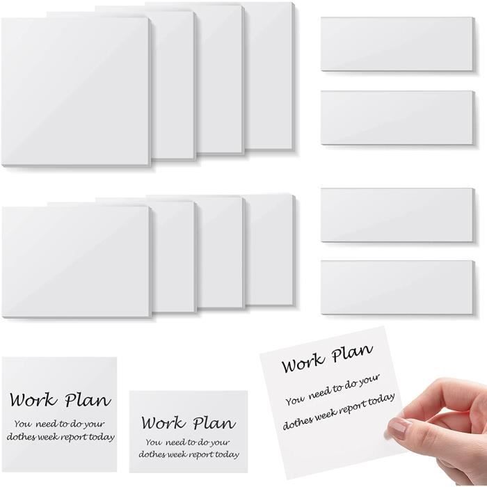 Post It Transparent Livre Annotation 300 Notes Adhésives Transparentes Gelanty - Lot Multicolore 75x75mm Sticky Notes Planner Post-it Transparent 300 Notes Autocollantes Transparentes Et 100 Onglets Autocollants Bureau Polyvalence d’utilisation: Essentielles en fournitures de bureau, école ou maison : collent sur écrans, murs, journaux, documents et bible tabs sans laisser de trace Spécification: Matériel: CPP Couleur: Blanc, Jaune, Rose, Bleu, Cyan Taille du produit: 75 x 75 mm / 2,95 x 2,95 pouce Poids d'emballage: 120 g Conception transparente: - Ces belles notes collantes translucides sont de couleur douce, vous permettant de voir le texte sous les notes collantes - Les signets ordinaires sont faciles à bloquer le texte, et la conception translucide peut bien résoudre ce problème sans endommager les livres - Conception de différentes couleurs, couleurs vives, facile à distinguer Remarque: - En raison de la mesure manuelle, il peut y avoir une erreur de 1 à 2 mm - Il est recommandé d'utiliser des stylos neutres, des stylos huileux, des stylos à bille pour écrire ou dessiner pour une meilleure expérience Service: - Merci d'avoir choisi et utilisé nos produits - La couleur et la taille de la photo peuvent être légèrement différentes du produit réel, si vous avez des questions sur le produit, veuillez nous contacter immédiatement pour résoudre le problème, merci pour votre compréhension et votre soutien. Idéal comme marqueurs de texte ou annotation livre Dimensions et quantité: Recevez 6 blocs de notes autocollantes transparentes (75 x 75 mm / 2.95 x 2.95 pouces, 300 feuilles) avec 5 couleurs (blanc, rose, jaune, cyan : 50 chacun ; bleu Adhésion réversible: S’appliquent et se retirent sans résidu, même sur surfaces délicates (devoirs, dessins). Nombreuses utilisations : vous pouvez fixer des notes adhésives transparentes sur des livres, des notes, des bibles, des portes, des murs, des tableaux blancs, des tables, des miroirs de salle de bain et toute autre surface lisse Parfaites comme marque page adhesif pour livres fragiles Contrairement aux autocollants classiques, ces feuilles laissent voir le texte sous-jacent sans l’occulter ni endommager les pages