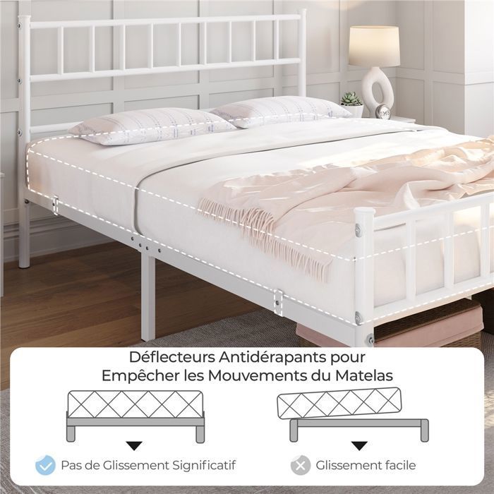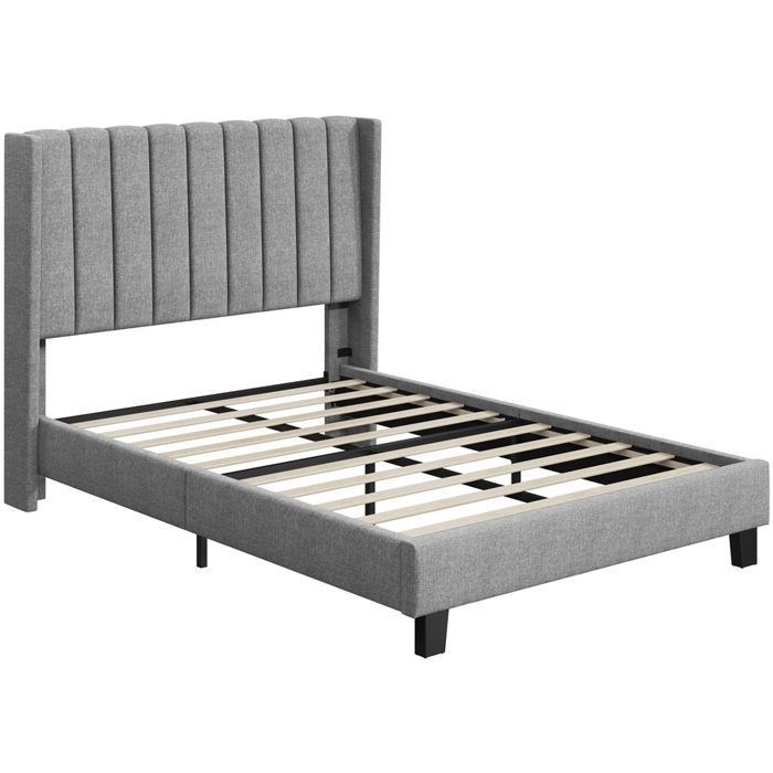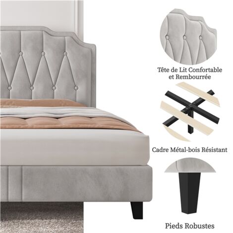 Lit Avec Tête De Lit Réglable Yaheetech Cadre De Lit Capitonné Avec Tête De Lit à Oreilles Lit Deux Place Rembourrage en velours doux: Le tissu de velours doux au toucher crée un cadre de lit rembourré étonnant avec sa texture luxuriante, tout en s'harmonisant avec les lignes des meubles qu'il recouvre. Le cadre de lit YAHEETECH allie élégance et fonctionnalité avec son design classique et sa tête de lit capitonnée réglable en hauteur. Mesurant 160x200cm, ce lit offre un espace de couchage généreux, idéal pour les couples ou ceux qui recherchent un confort optimal Découvrez l'élégance contemporaine dans votre chambre avec ce cadre de lit rembourré, sublimé par une tête de lit carrée finement capitonnée. Conçu avec une structure robuste en métal et bois, habillée d'un tissu à effet lin raffiné, il allie solidité et modernité Caractéristiques techniques : Couleur : Gris foncé - Matériau : contreplaqué, bois de peuplier, panneaux de bois MDF, métal, mousse, tissu velours en polyester. Construction solide pour des nuits paisibles: Doté d'un cadre en métal résistant et de pieds en bois massif, ce cadre de lit rembourré vous assure des nuits de sommeil confortables et silencieuses, sans les grincements ennuyeux et dérangeants Yaheetech Cadre de Lit Design Classique 140x200cm avec Tête de Lit Capitonnée Réglable en Détails subtils: Notre cadre de lit design se démarquent aussi des lits classiques par leur forme de la tête de lit. Description du produit Ce lit capitonné a une tête de lit inspirée de l'art déco : Les lignes chics, le tissu velouté et les garnitures tuftées apportent un glamour élégant. Le cadre de lit robuste avec sommier à lattes et les pieds solides offrent un soutien solide. Profitez de chaque nuit reposante avec ce lit douillet Le matelas repose directement sur les lattes, donc pas besoin d'un sommier tapissier. Garde au sol : 15,5 cm., Charge maximale : 360 kg Dimensions : 203,5 cm x 146,5 cm x 107,5 cm - 117,5 cm - Surface de couchage : 140 cm x 200 cm (l x H) entre la tête de lit et la surface de couchage : 20,5 cm - 30,5 cm Nombre de lattes : 10 Distance entre les lattes : 12,5 cm – 13 cm. Grâce à son design pratique, vous pouvez choisir l'épaisseur souhaitée du matelas.